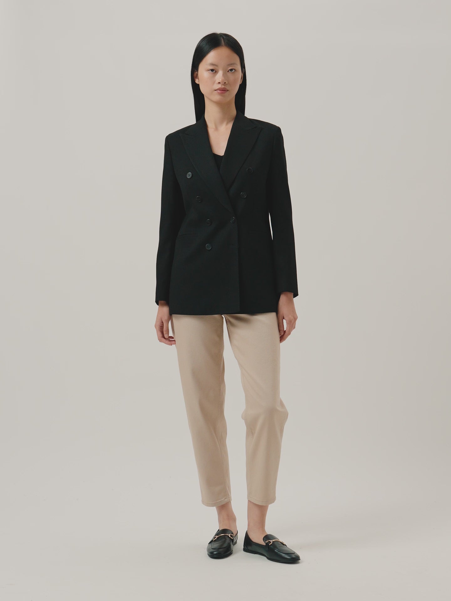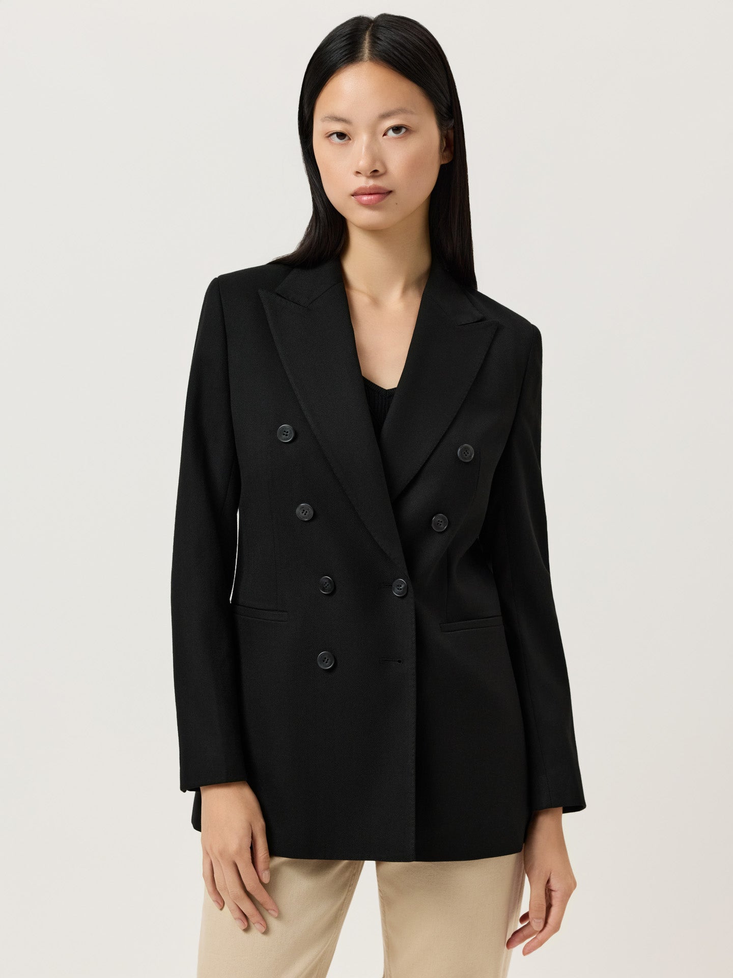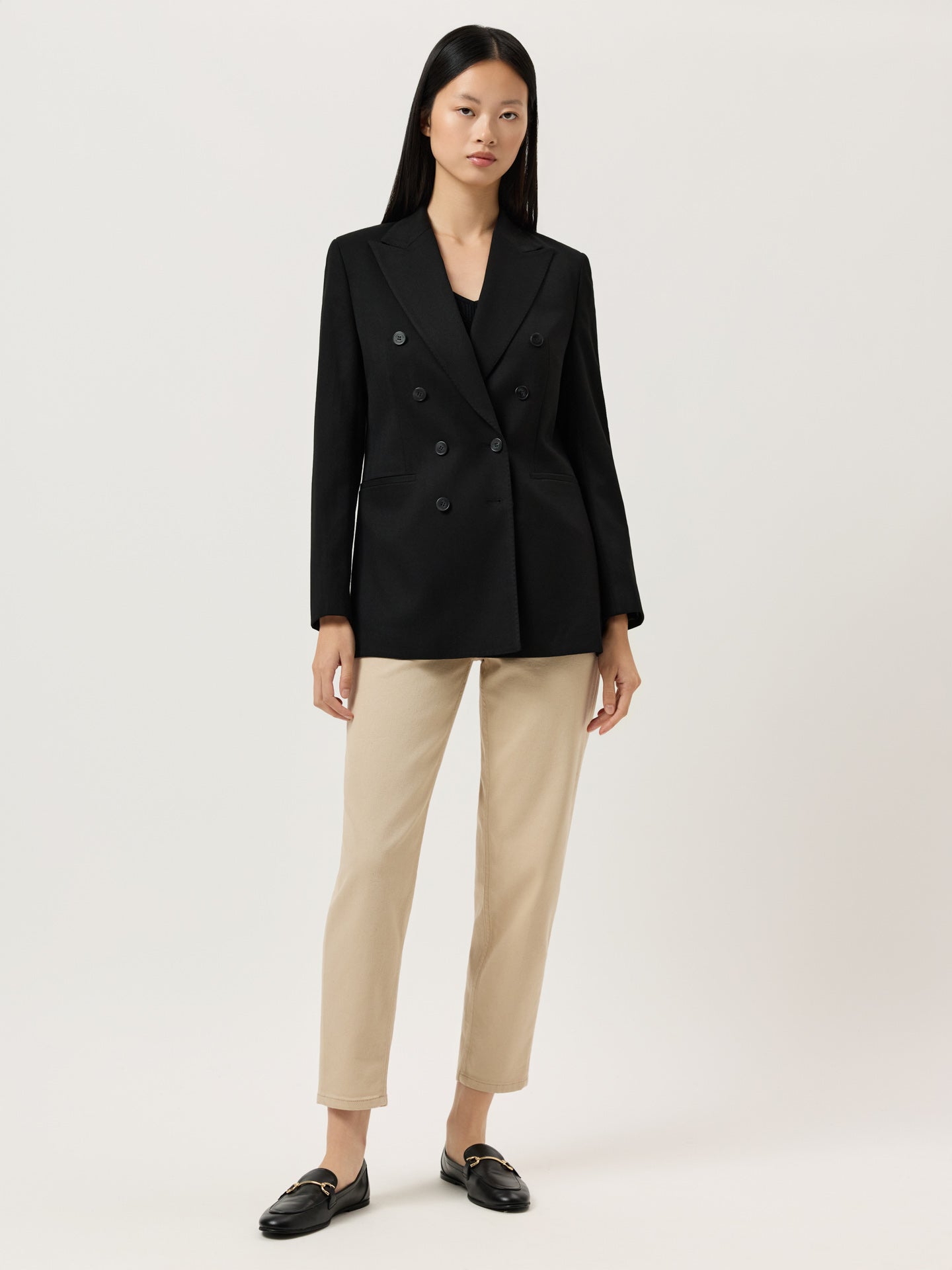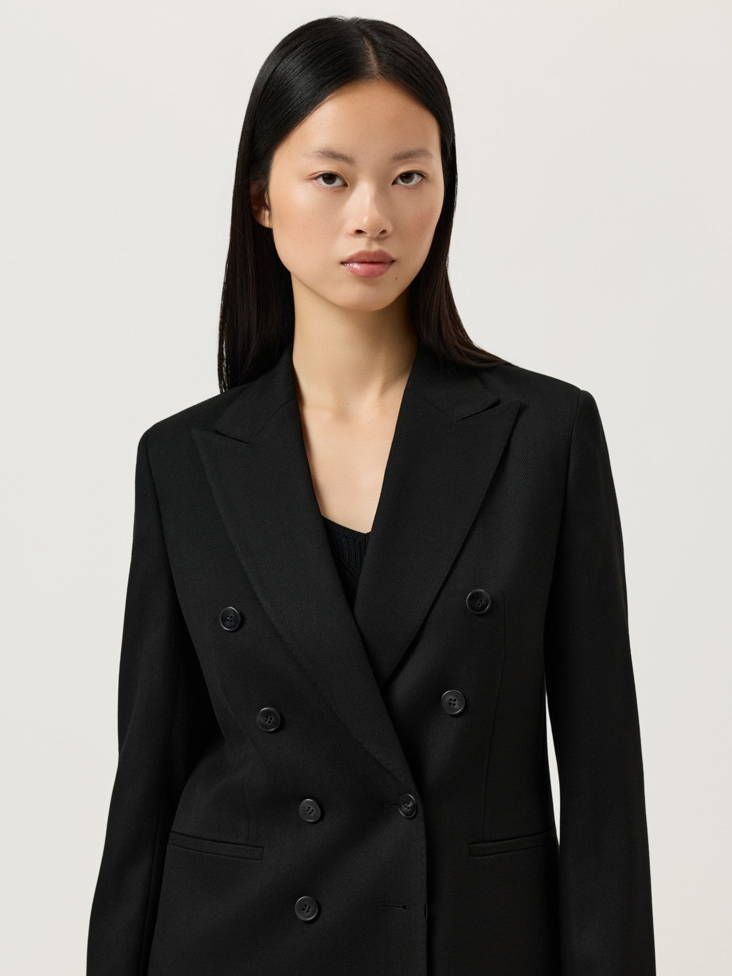 Double-Breasted Blazer In Rayon Blend Herringbone