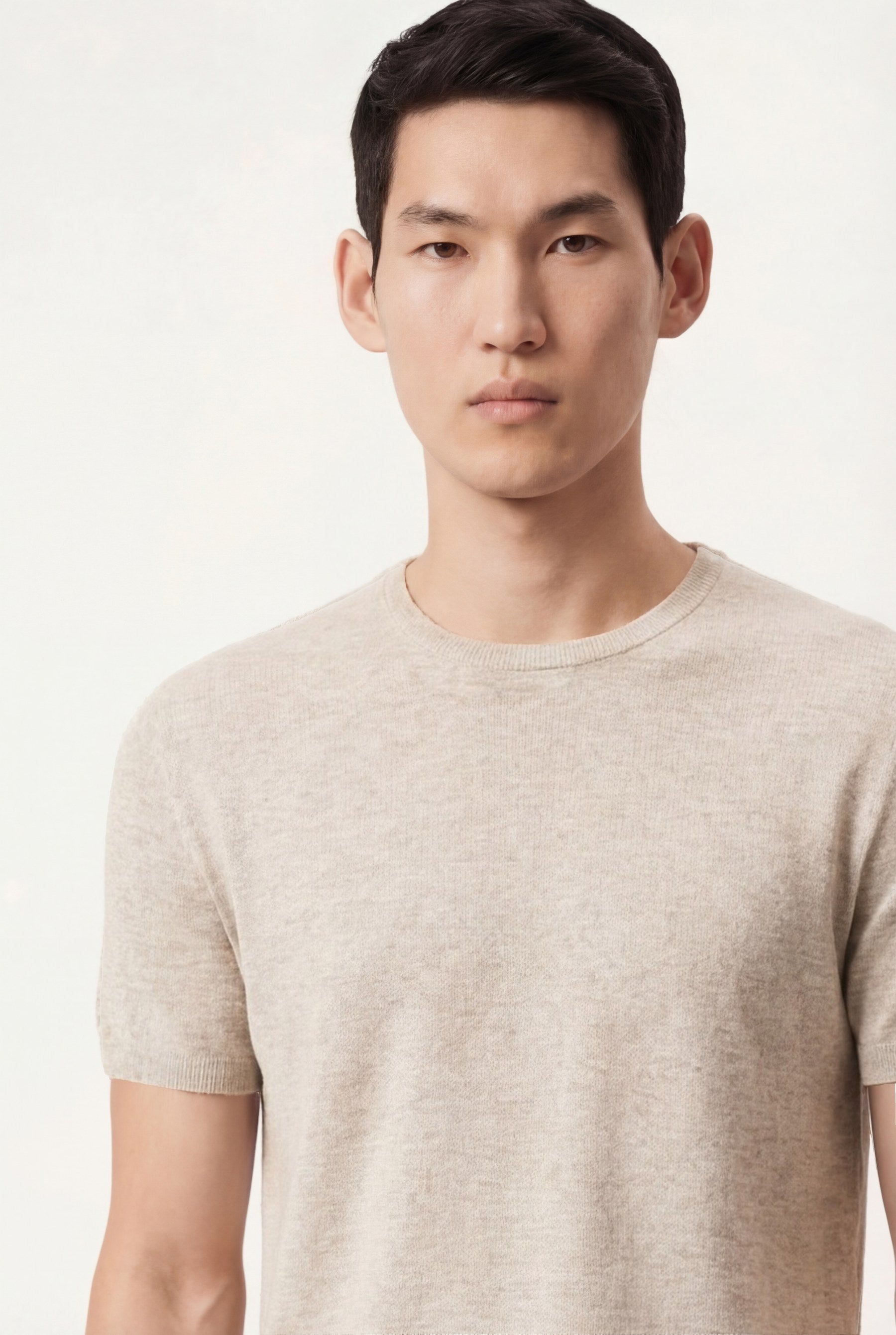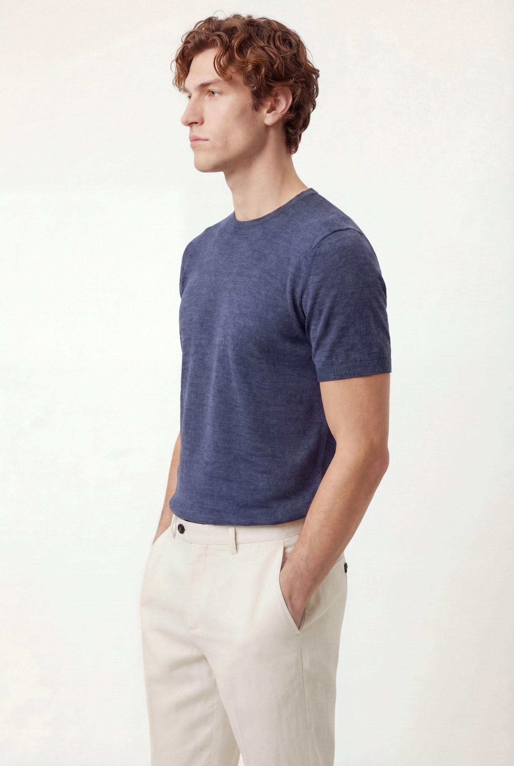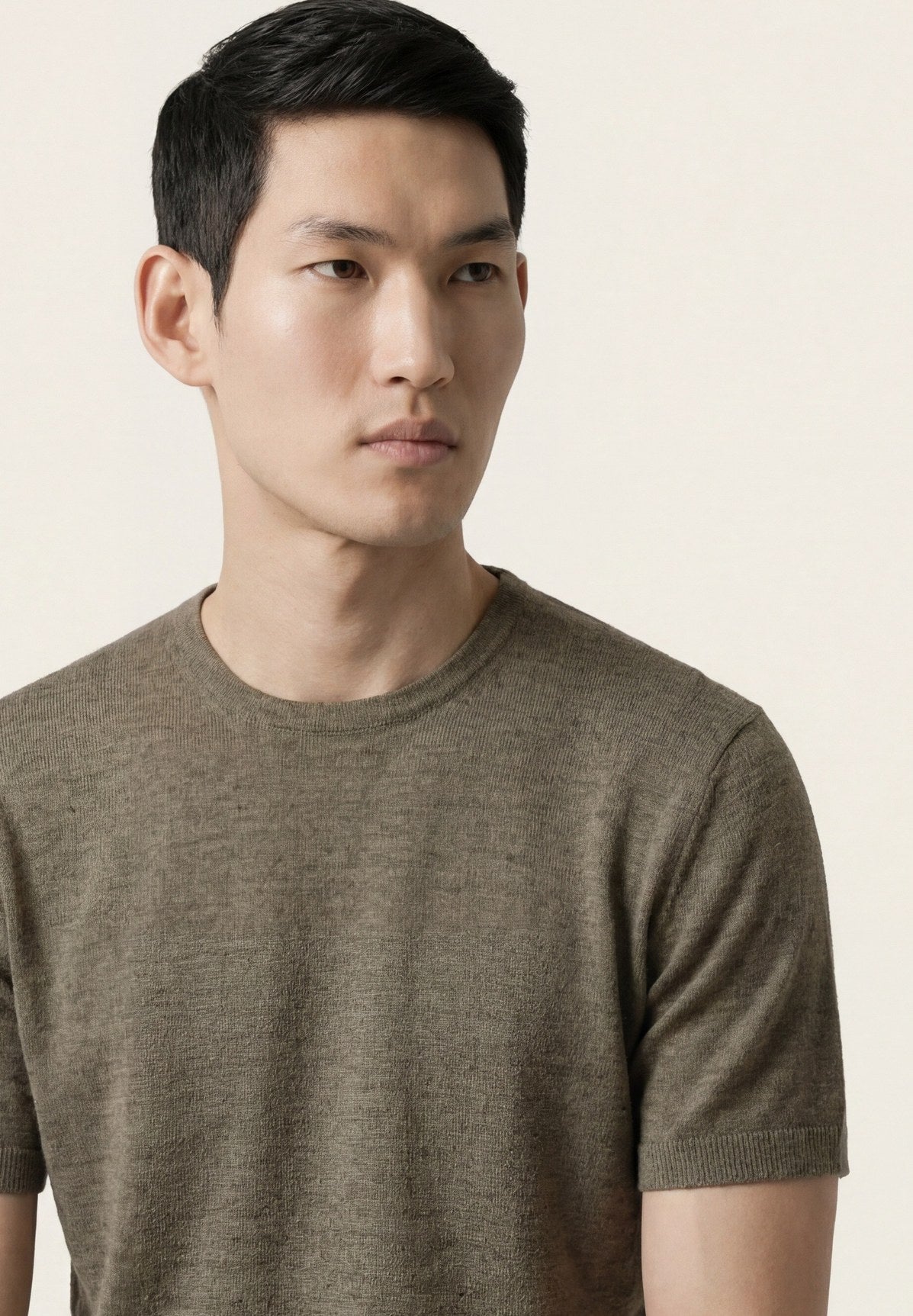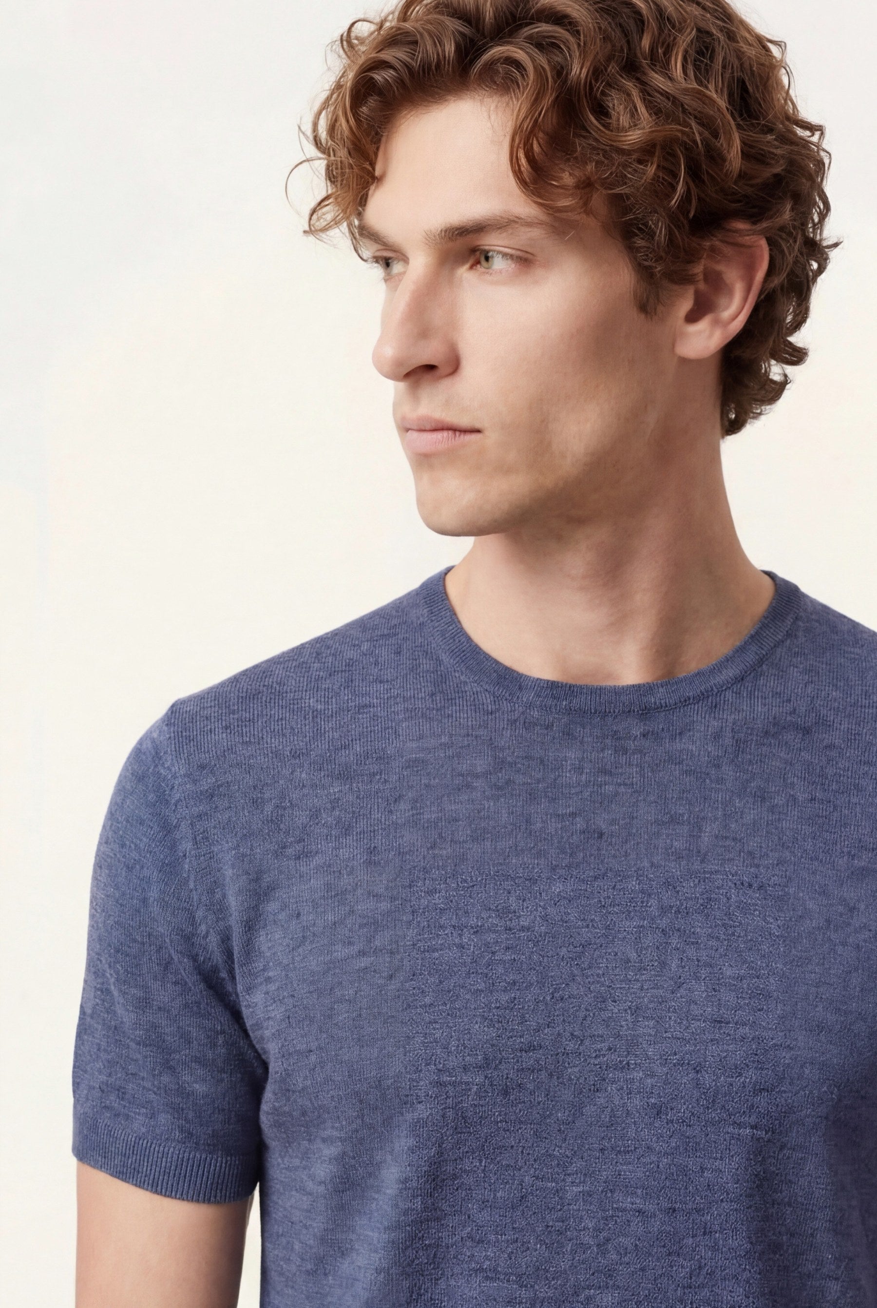 Short Sleeve Crew Neck Sweater In Pure Linen