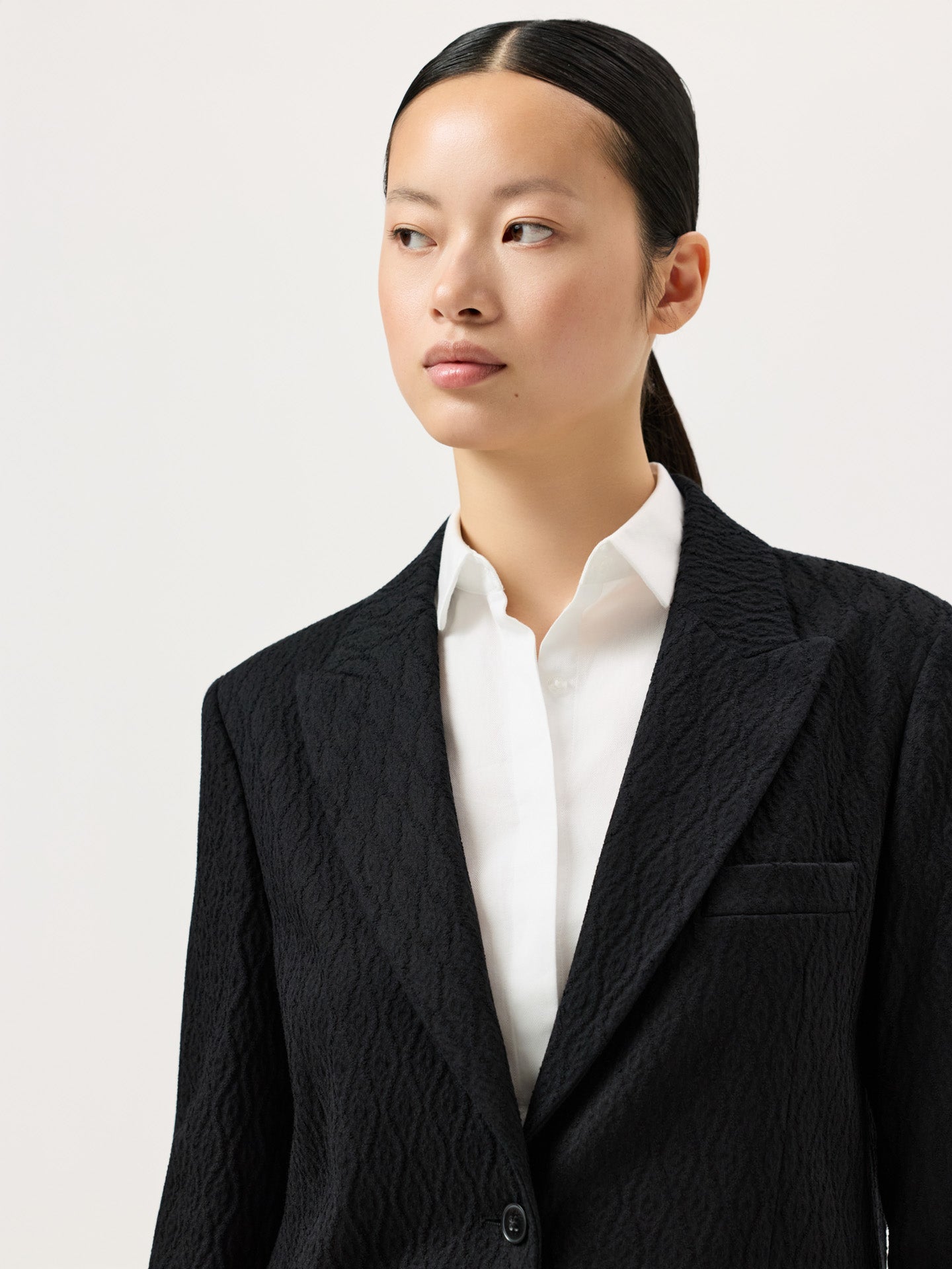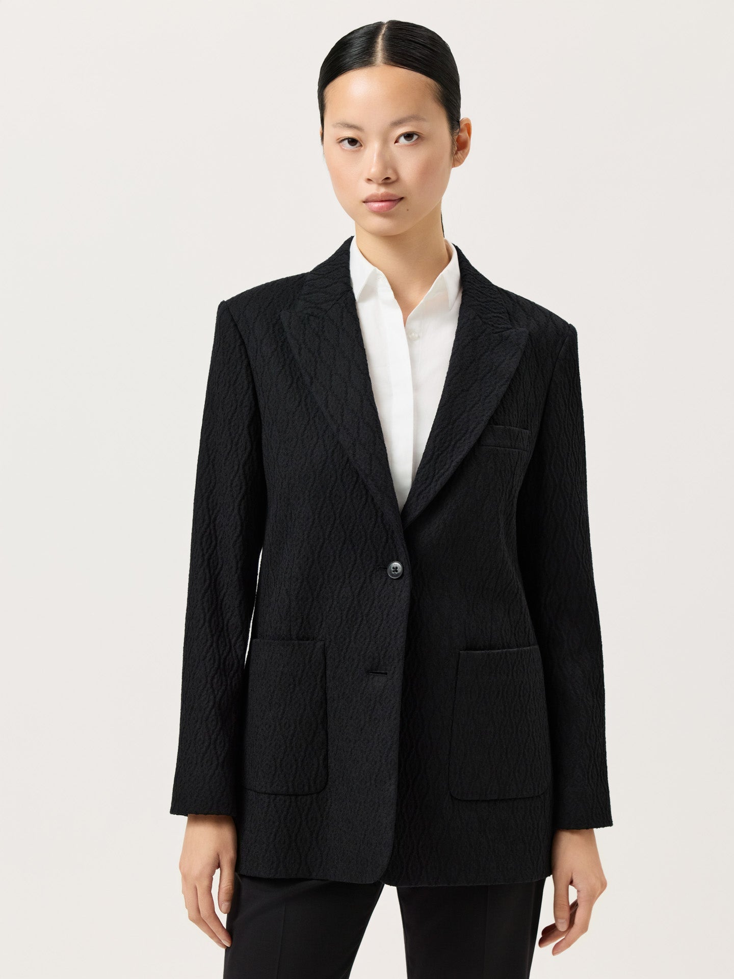 Oversized Single-Breasted Blazer In Cotton Blend Textured Jacquard