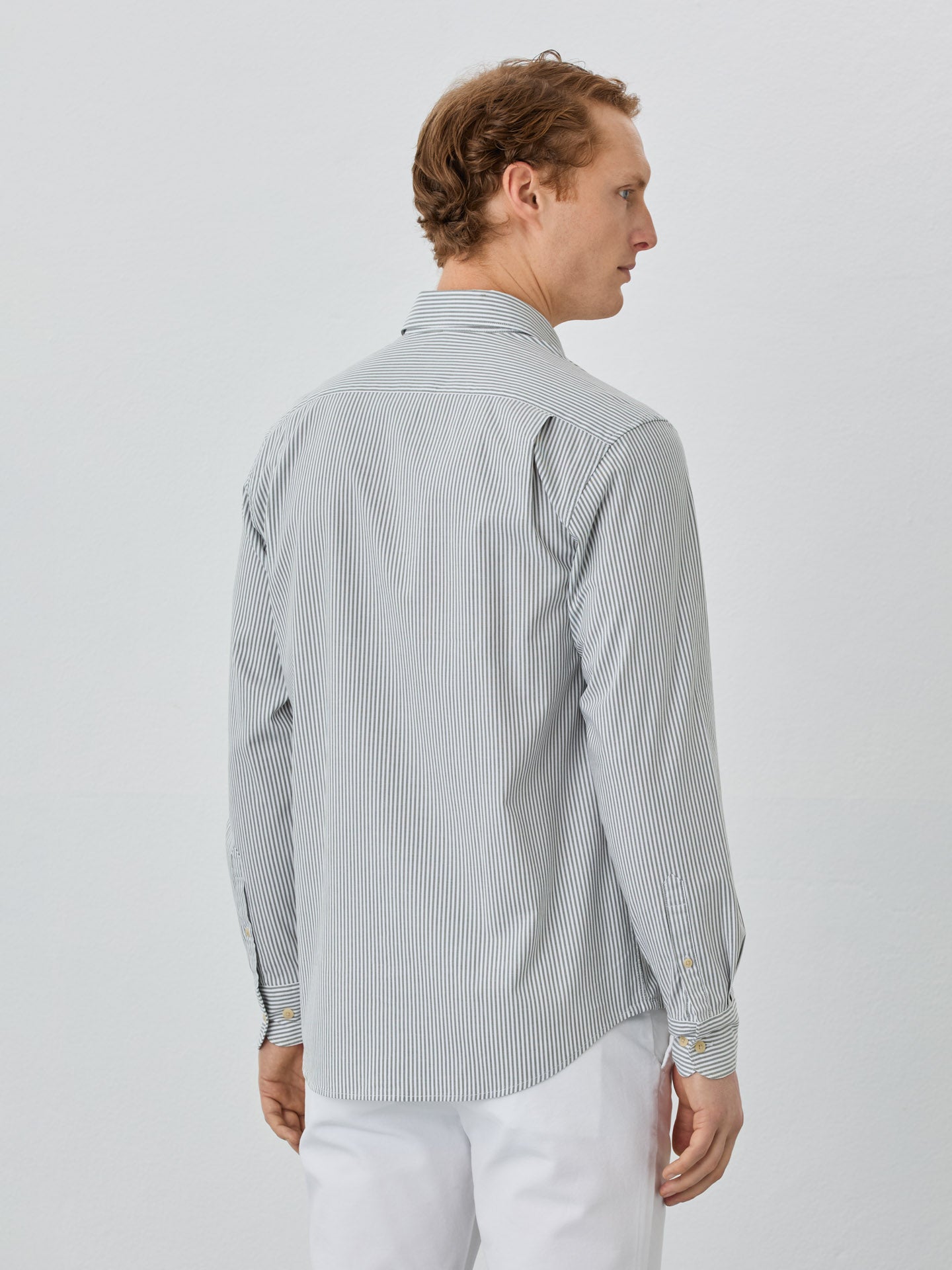 Regular Fit Shirt With Open Collar In BCI Cotton With Stripes