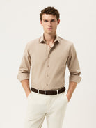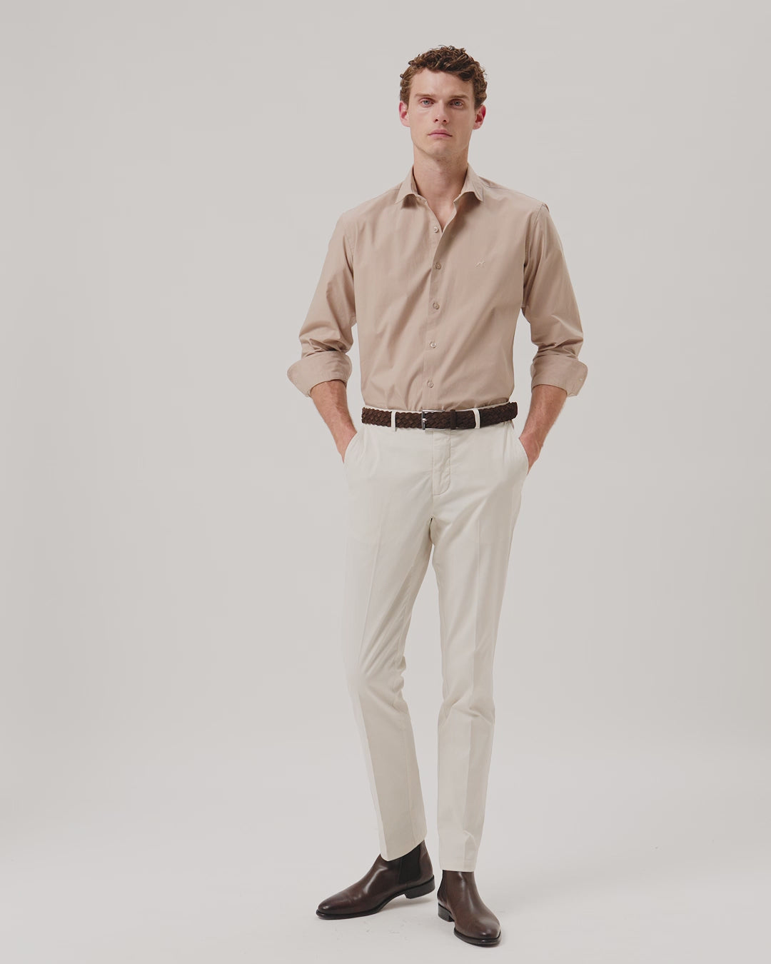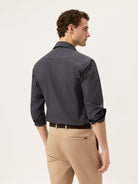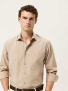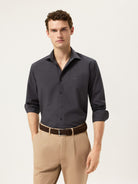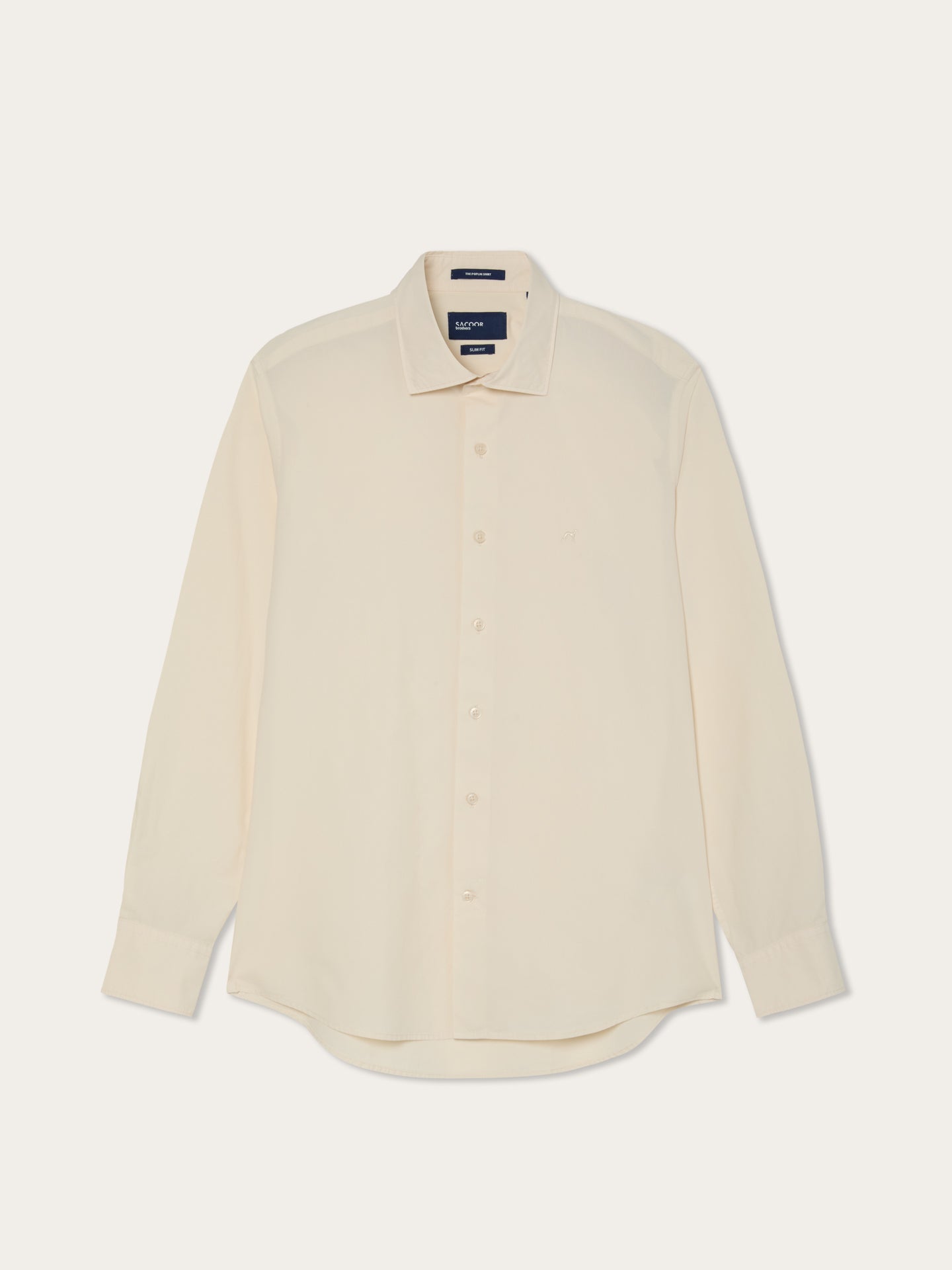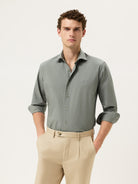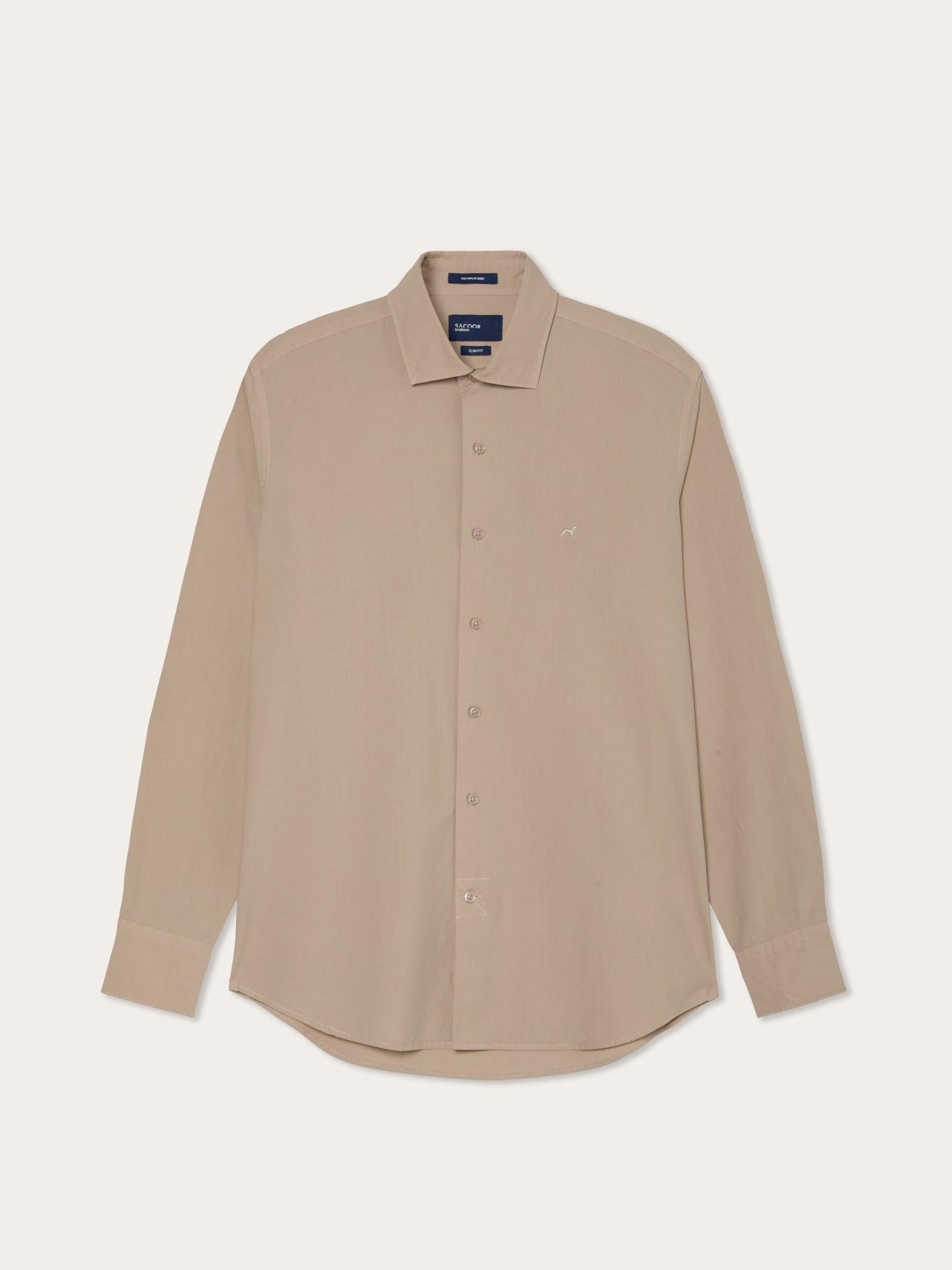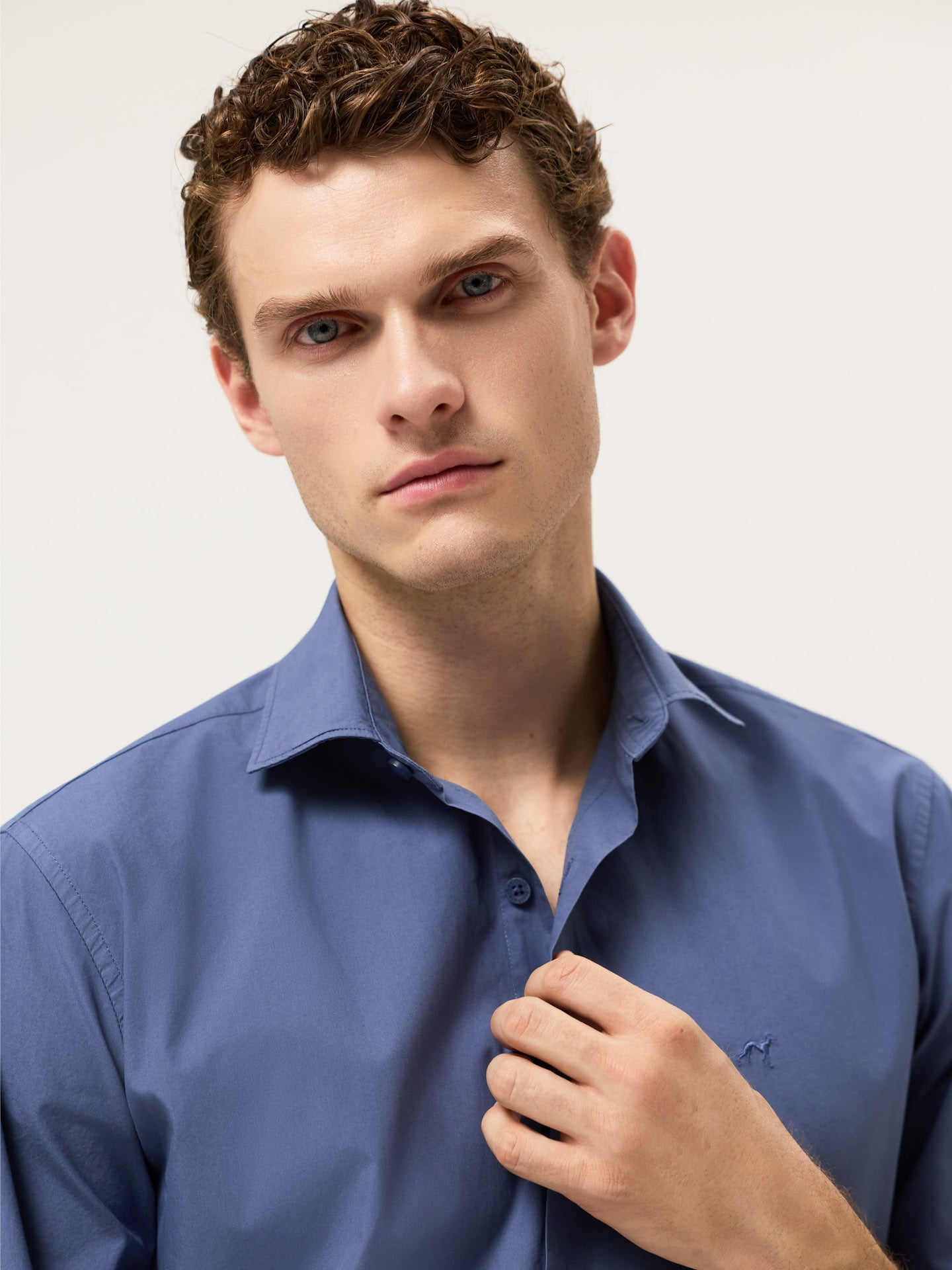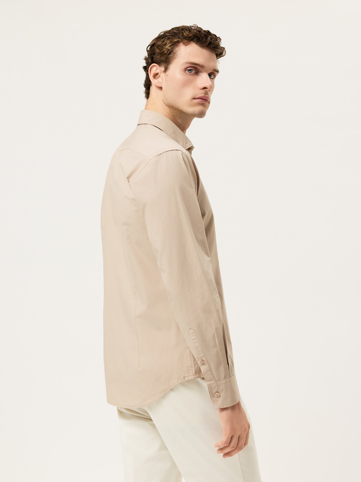 Slim Fit Overdye Poplin Shirt With Open Collar