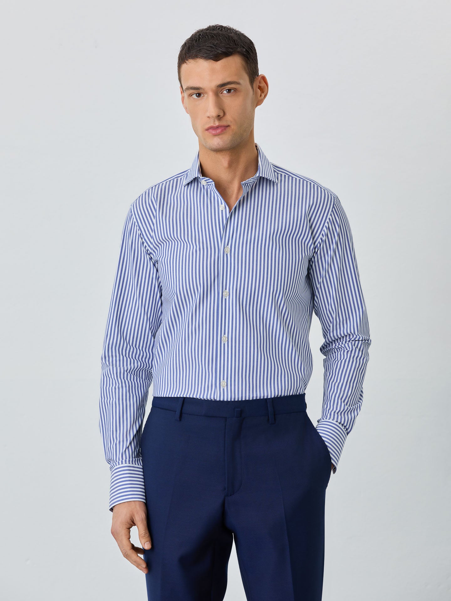 Slim Fit Shirt With Dublin Collar In Cotton Blend With Stripes