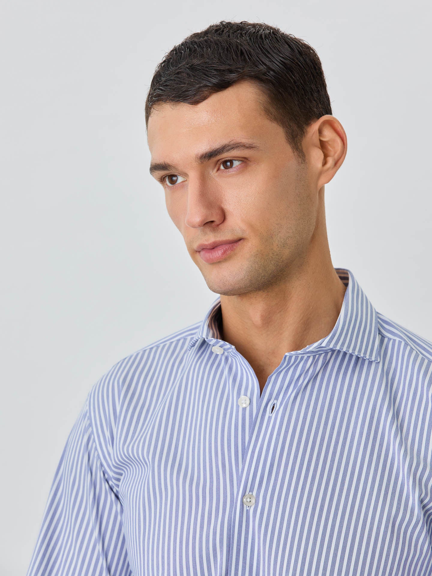 Slim Fit Shirt With Dublin Collar In Cotton Blend With Stripes