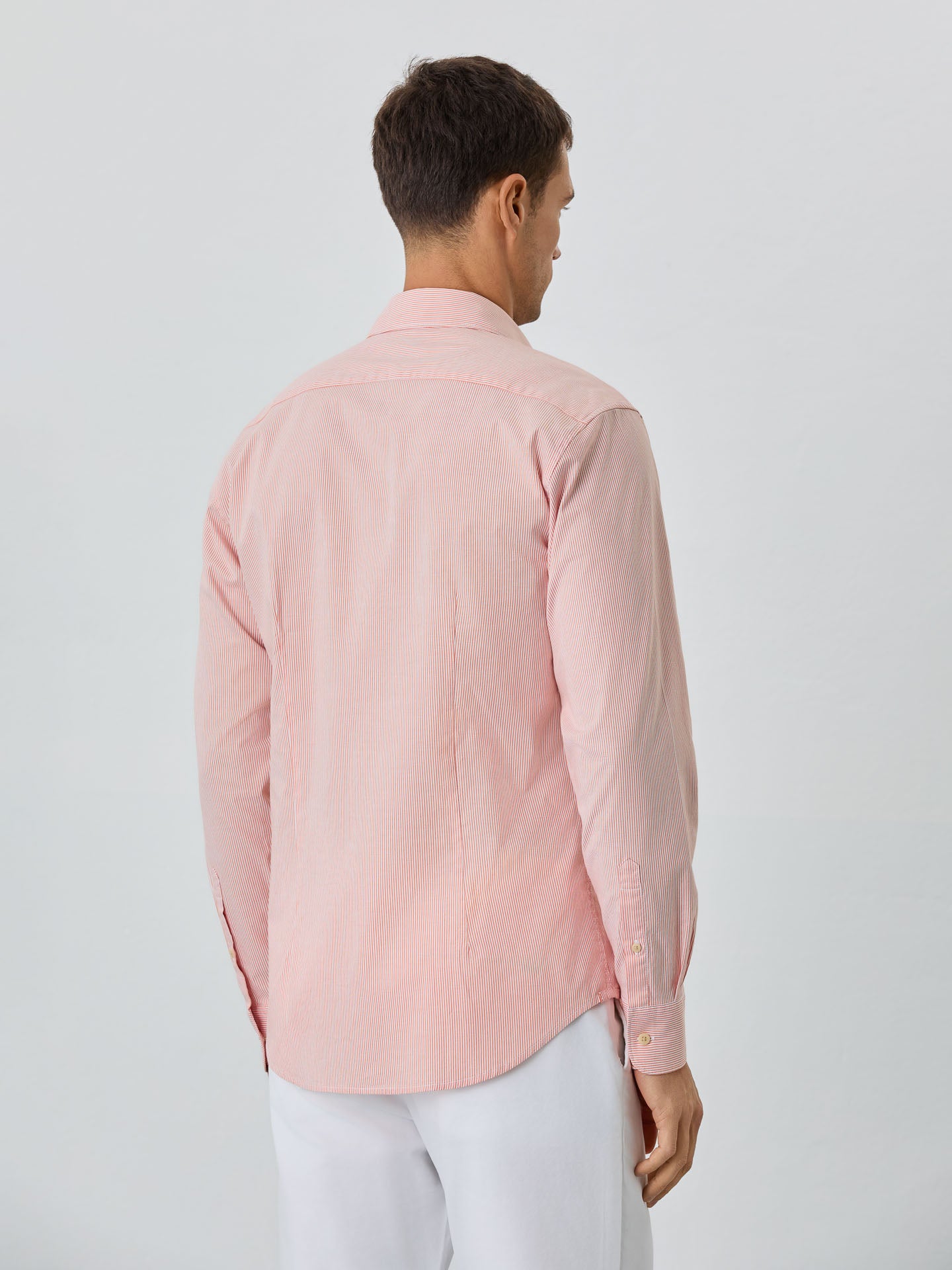 Slim Fit Shirt With Open Collar In BCI Cotton With Stripes