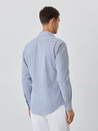 Slim Fit Shirt With Open Collar In BCI Cotton With Stripes