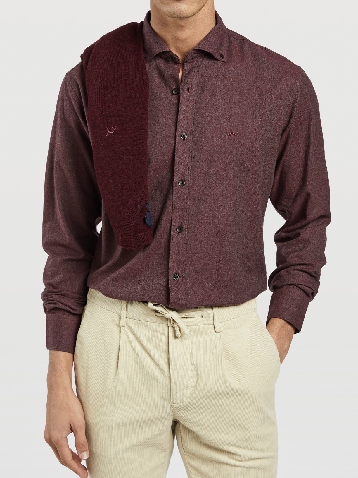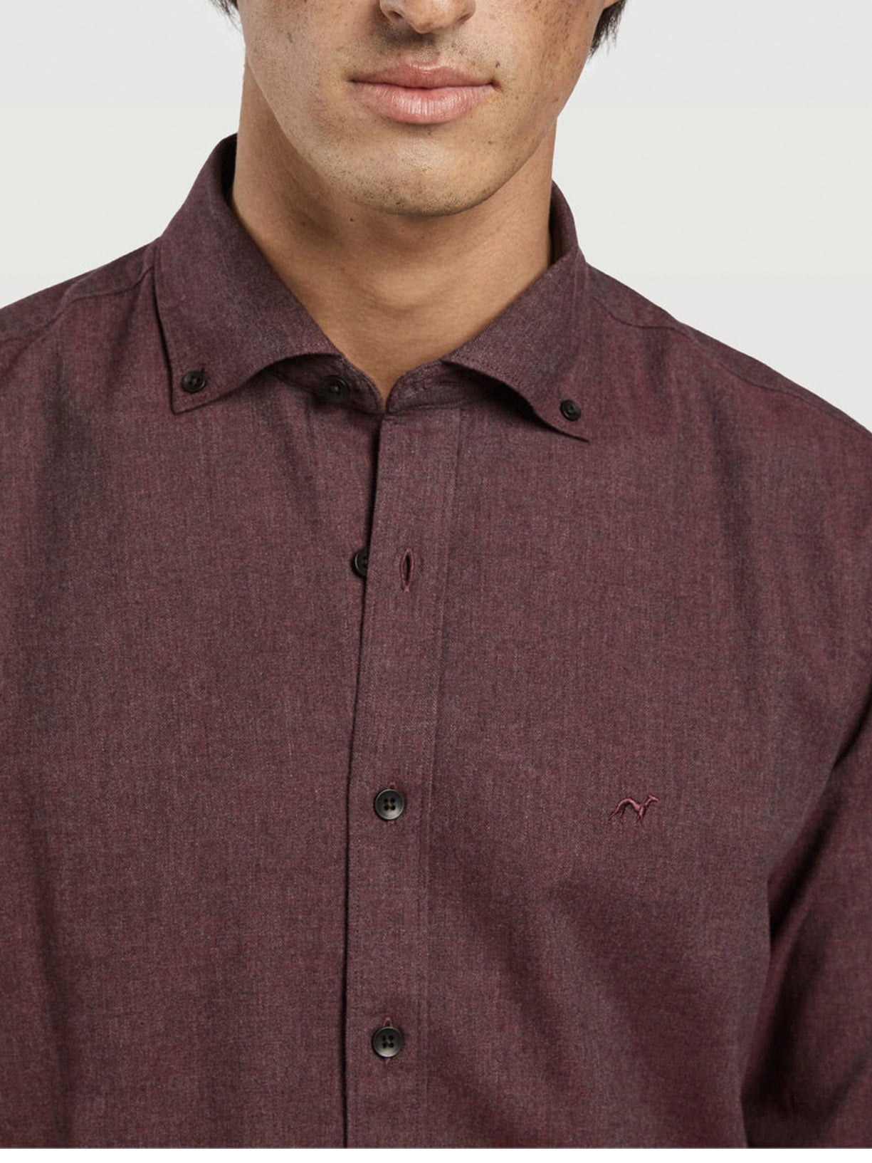قميص رياضي مصنوع من القطن بنسبة 100%. يتميز بمقاس نحيف، وياقة بأزرار سفلية، وإغلاق بأزرار أمامية. أكمام طويلة بأساور مفردة مع زرين. تطريز شعار الصدر.