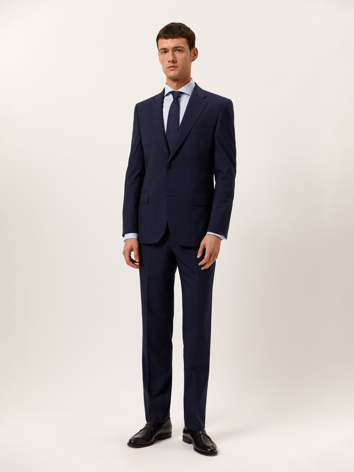 A refined piece that offers lasting elegance and easy versatility. Expertly tailored from 100% Wool, this two-piece from our Formal line features a regular Fit that creates a relaxed silhouette, ideal for all body types. The fully lined blazer has a two-button closure, notch lapels, flap pockets, four-button cuffs, and two back vents for added comfort and ease of movement. The trousers include a zip fly with button and extended waistband fastening, two side pockets with a coin pocket, two back welt pockets, and belt loops. Ideal for the office and any situation where a sharp look matters. Suits for every occasion — once you try one, you won’t want to wear anything else.