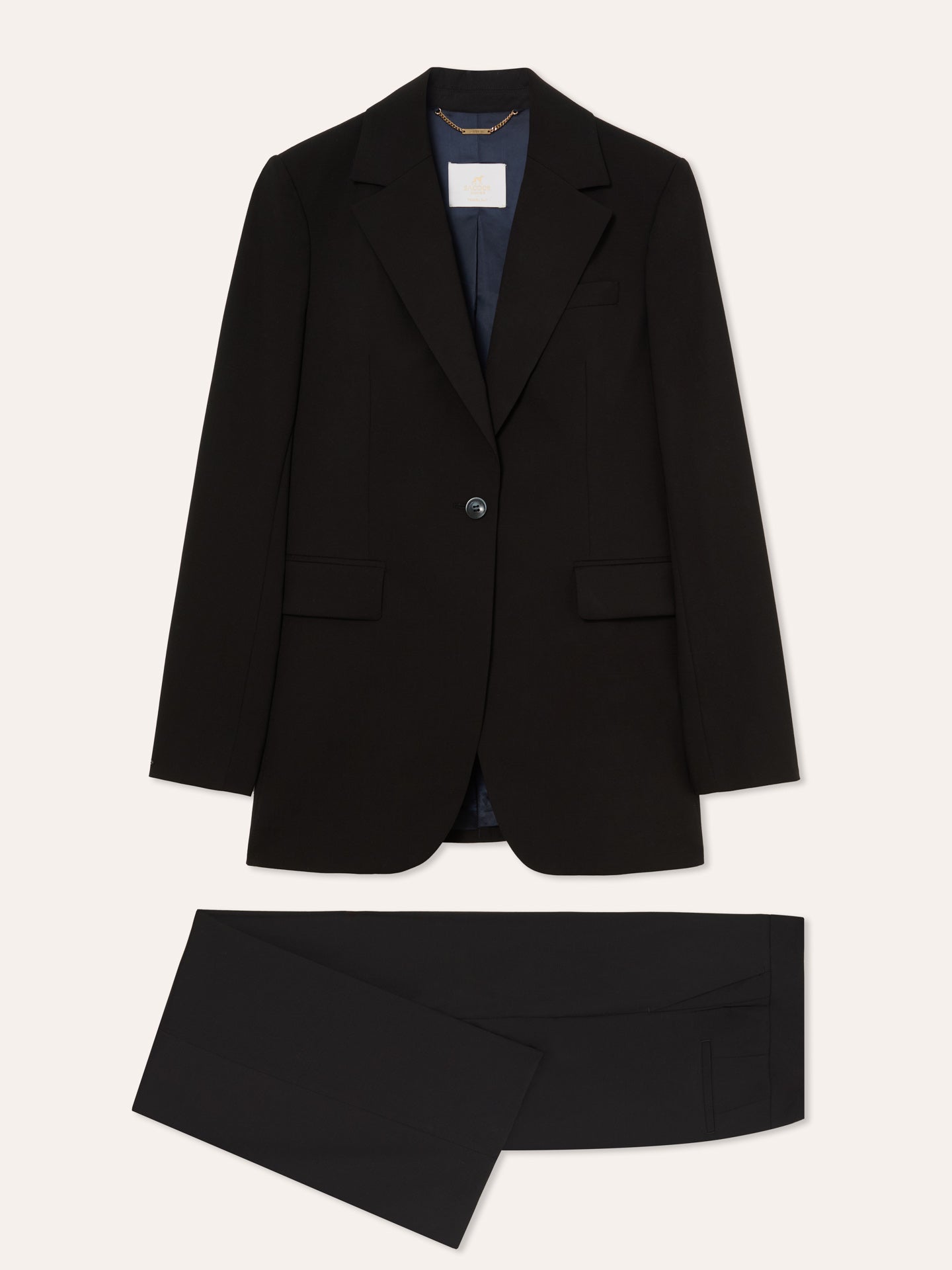 A refined piece that offers lasting elegance and easy versatility. Expertly tailored from high-performance Wool with added elastane, this suit ensures excellent elasticity, breathability, and crease resistance — offering all-day comfort and an impeccable fit. This slim Fit two-piece suit features a relaxed silhouette that flatters all profiles. The single-button blazer includes notch lapels, flap welt pockets, four-button cuffs, and two back slits. The wide-leg trousers come with a zip fly, waistband with button fastening, two side pockets and two back welt pockets. Ideal for the office or any moment that calls for a sharp appearance. A suit for every occasion — once you try it, you won’t want to wear anything else.