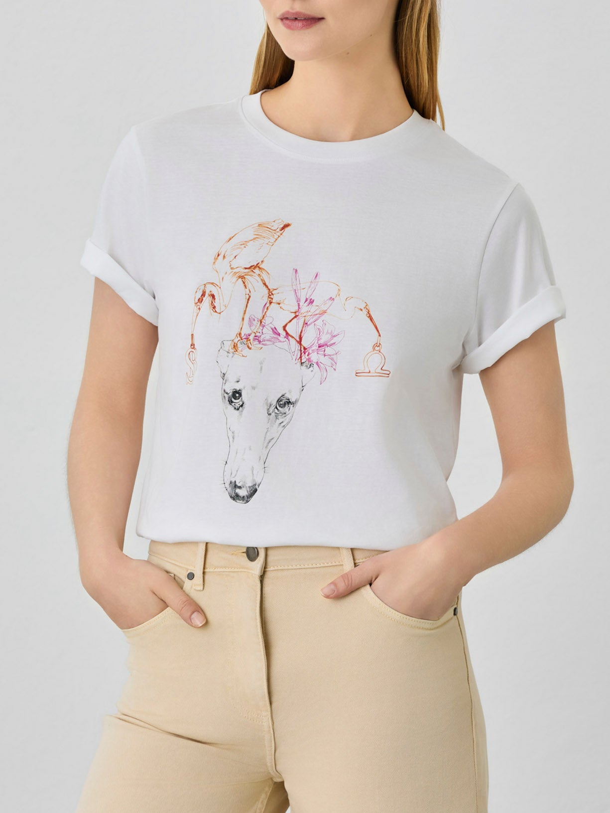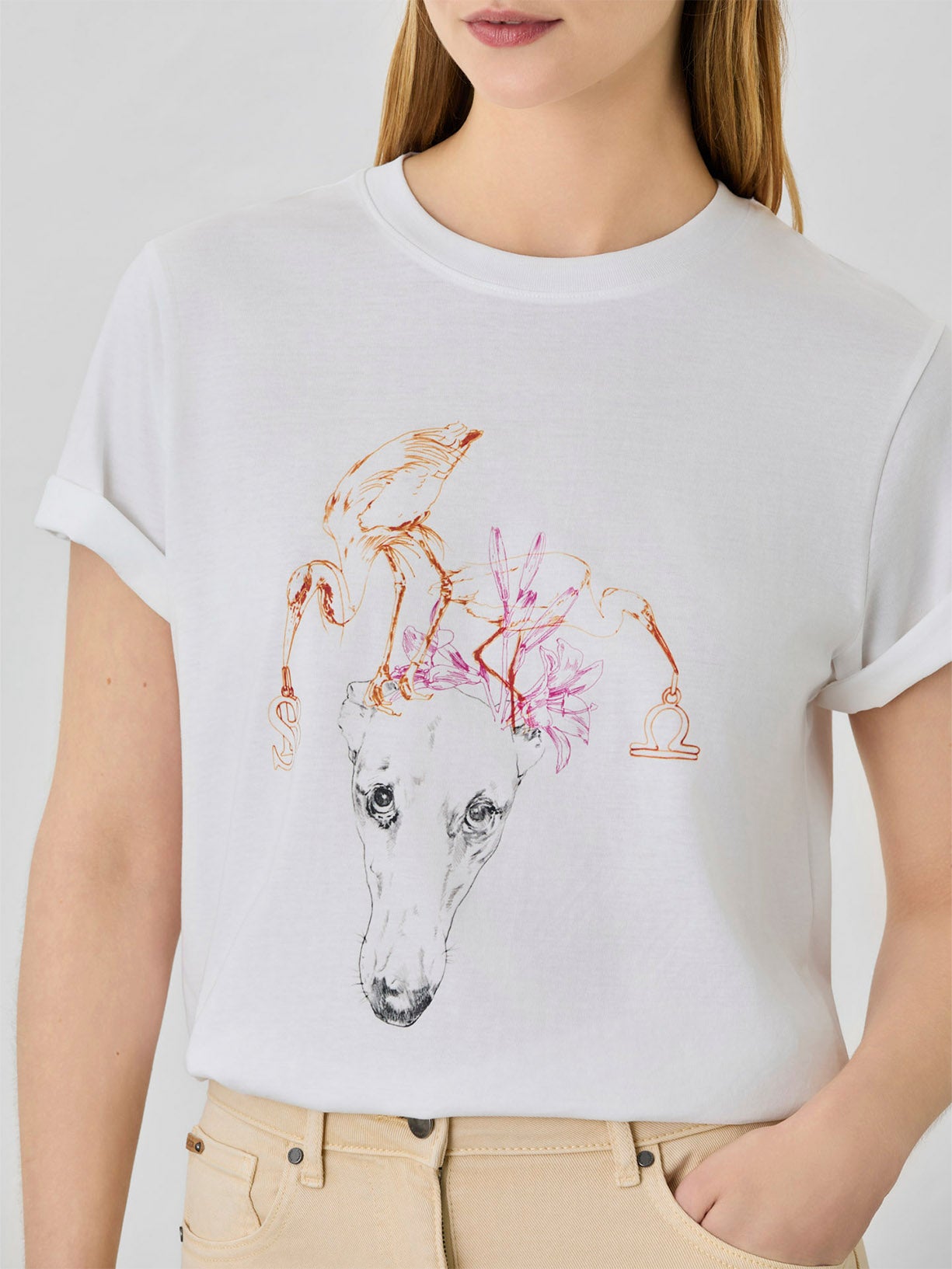 Regular fit Libra t-shirt from our Special Edition Zodiac Capsule collection. Made in organic cotton with a Libra Sign illustration by the renowned Portuguese Fashion Illustrator Antonio Soares. This special collaboration with Antonio Soares, brought to life a fresh representation of the zodiac signs trough our greyhound logo, mixing the classic image with fun and colorful details for a more contemporary look. Features a round neckline and short sleeves.