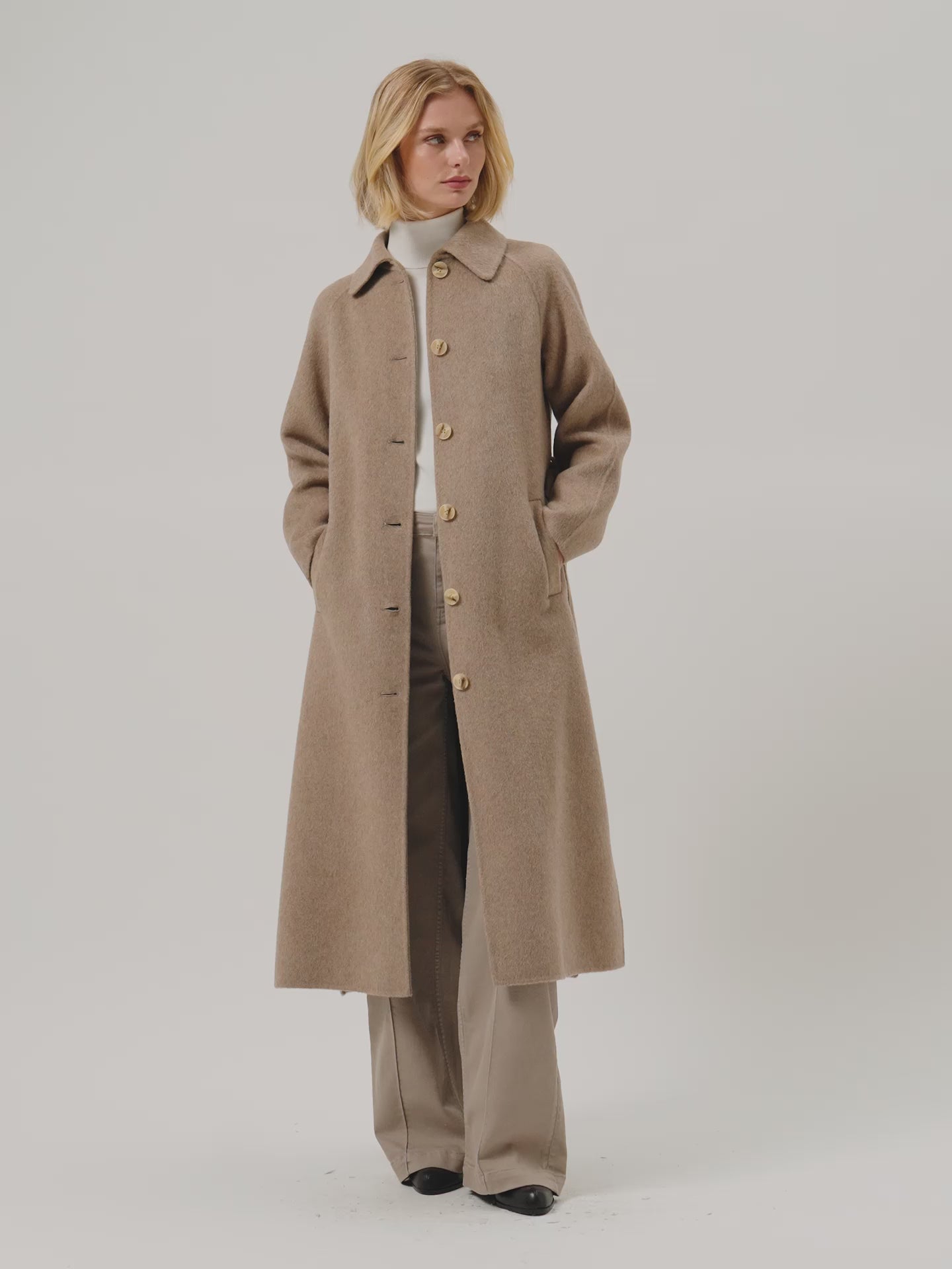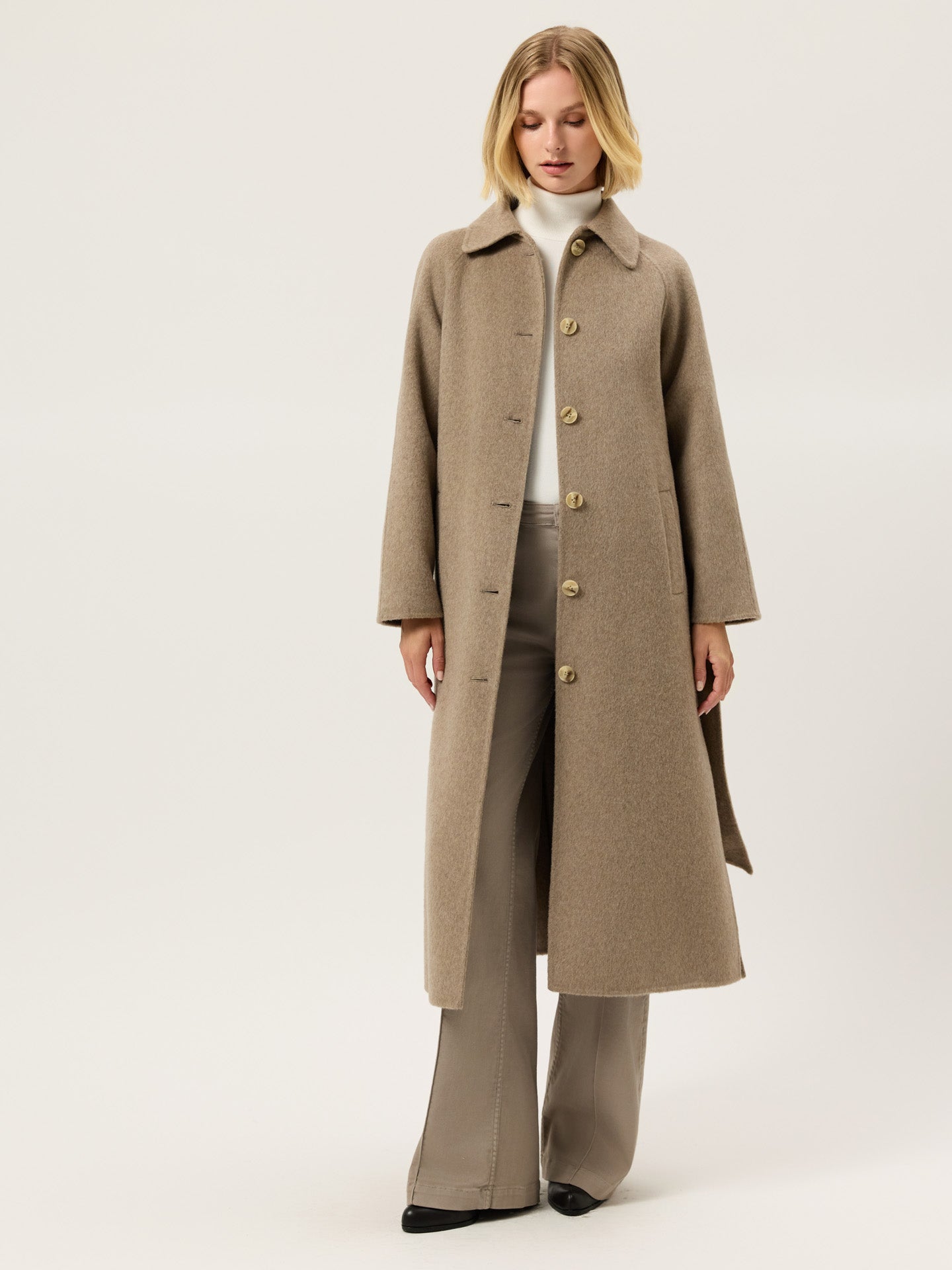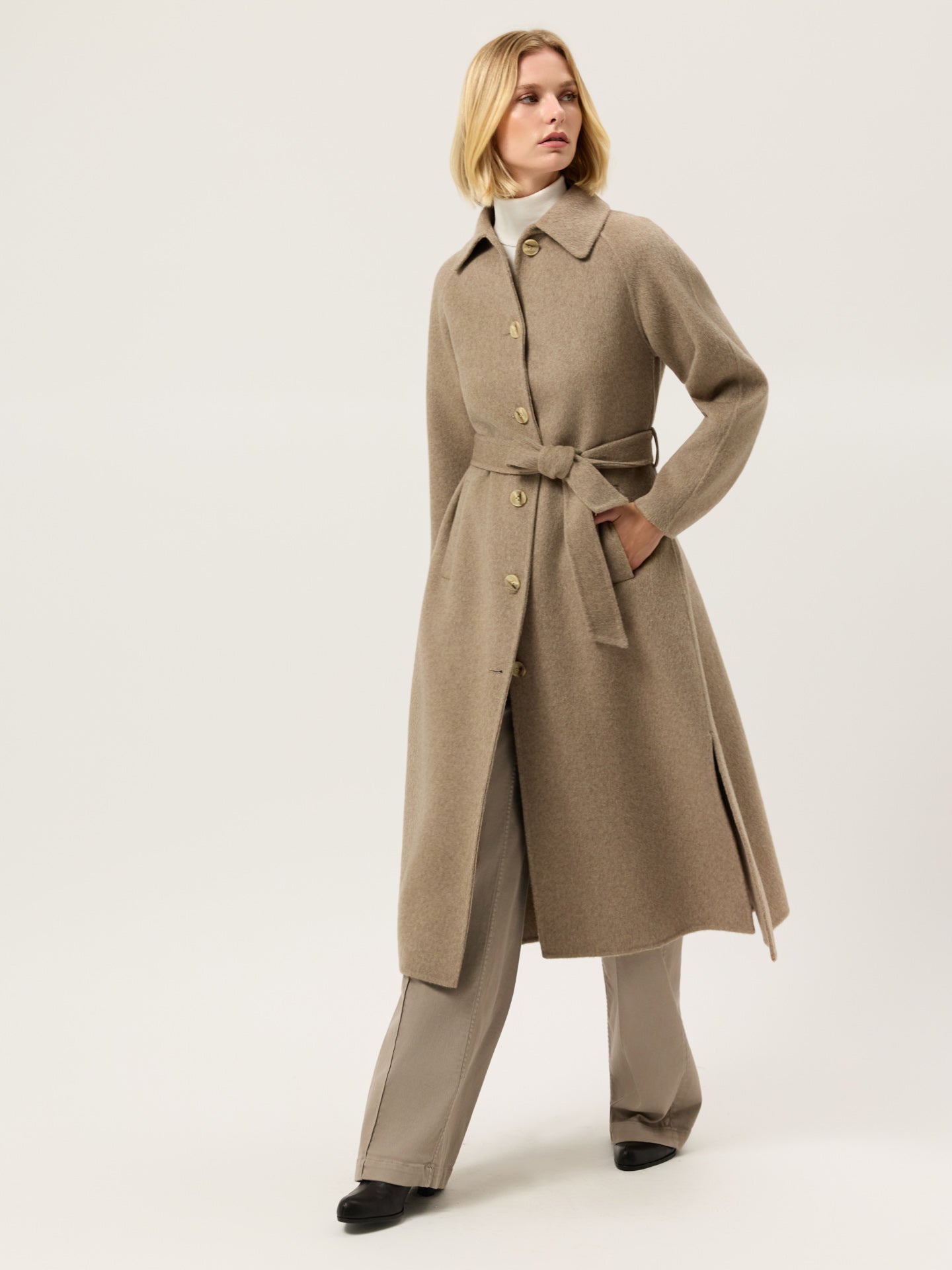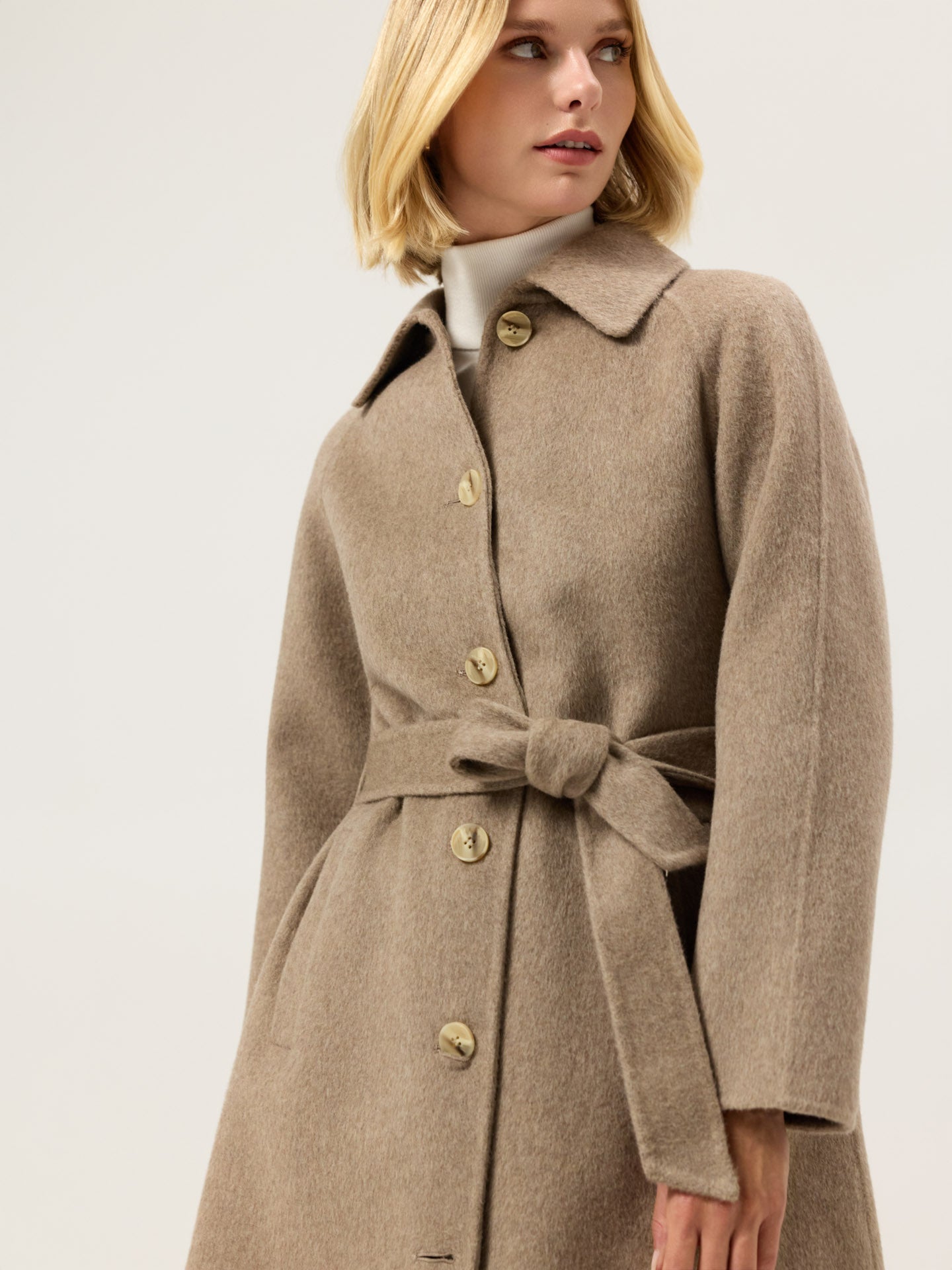 Handmade Overcoat In Wool and Tencel Blend With Belt
