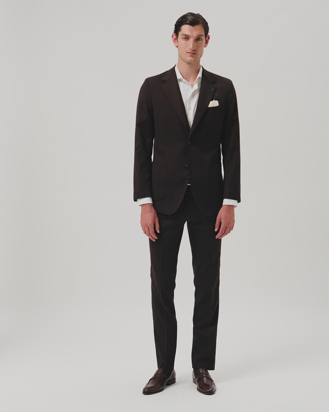 The men's suits from Sacoor Brothers are available with 'Drop 5' and 'Drop 6'. This designation refers to the difference between the blazer size and the trouser size. When ordering a size 46 with 'Drop 5', the trousers will be around size 41, while 'Drop 6' will result in trousers of size 40.