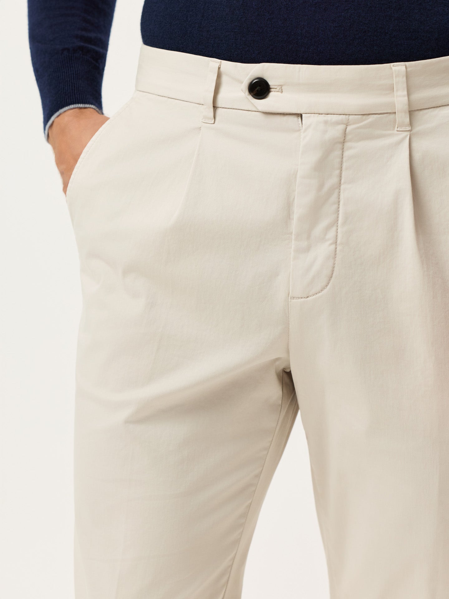 Slim Fit Light Twill Chino With Front Pleat And Garment Dye Finish