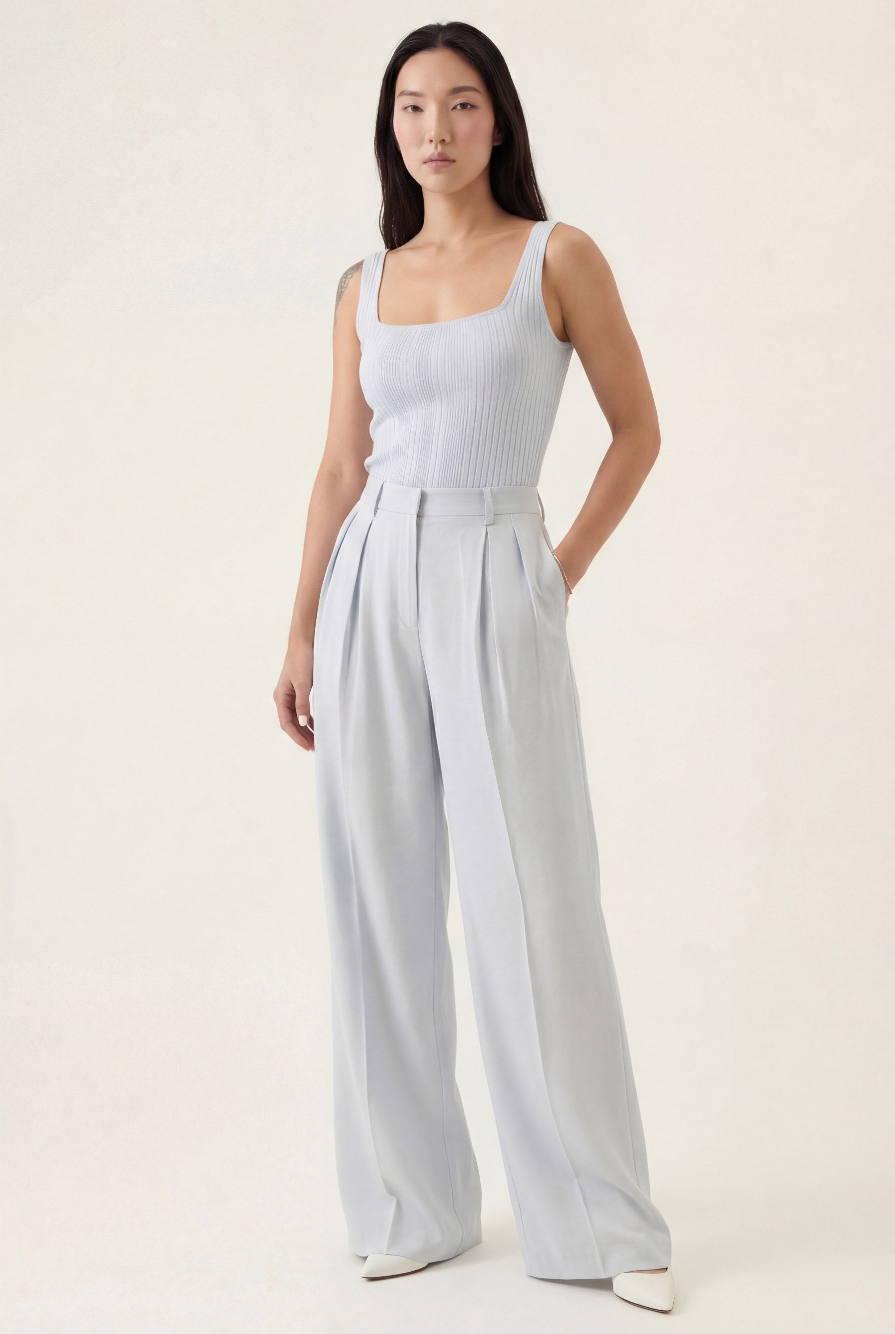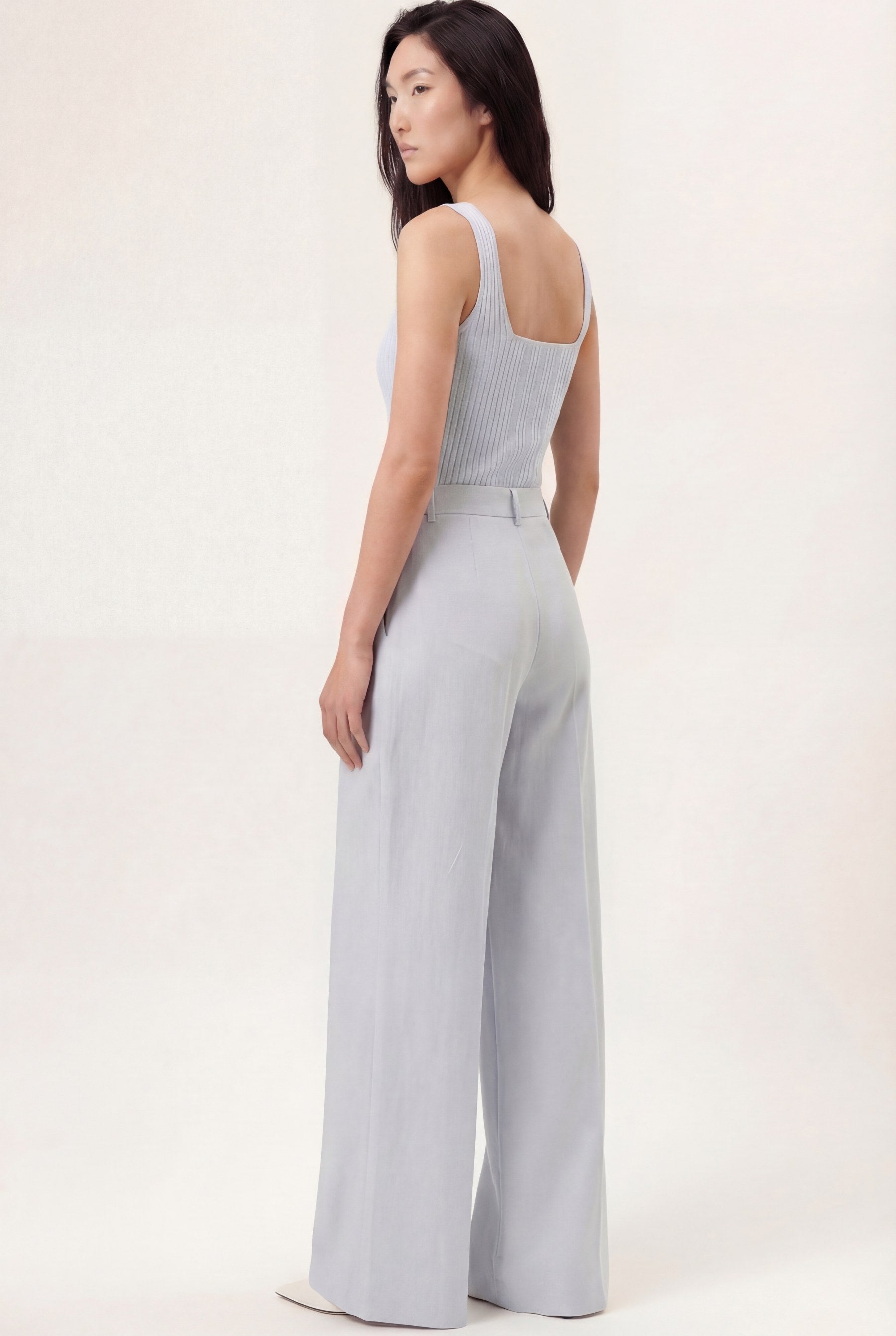 Wide Leg Trousers In Tencel And Linen Blend With Inverted Pleats