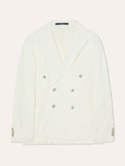 Unstructured Double-Breasted White Piqué Cotton Blazer
