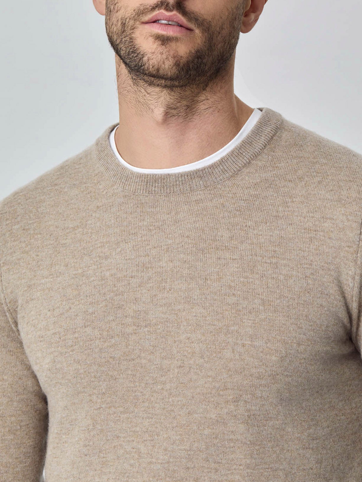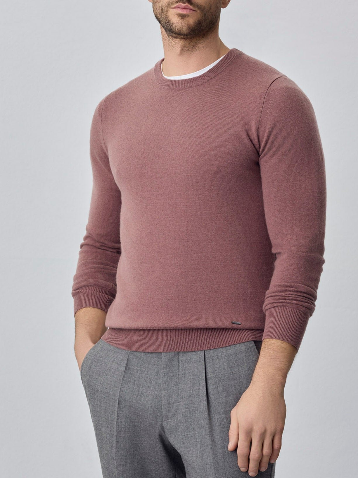 Machine Washable Crew Neck Sweater With Long Sleeves In Lambswool Blend
