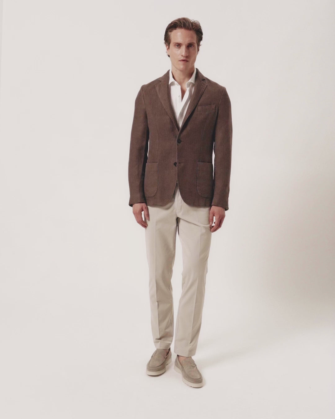 The men's suits from Sacoor Brothers are available with 'Drop 5' and 'Drop 6'. This designation refers to the difference between the blazer size and the trouser size. When ordering a size 46 with 'Drop 5', the trousers will be around size 41, while 'Drop 6' will result in trousers of size 40.
