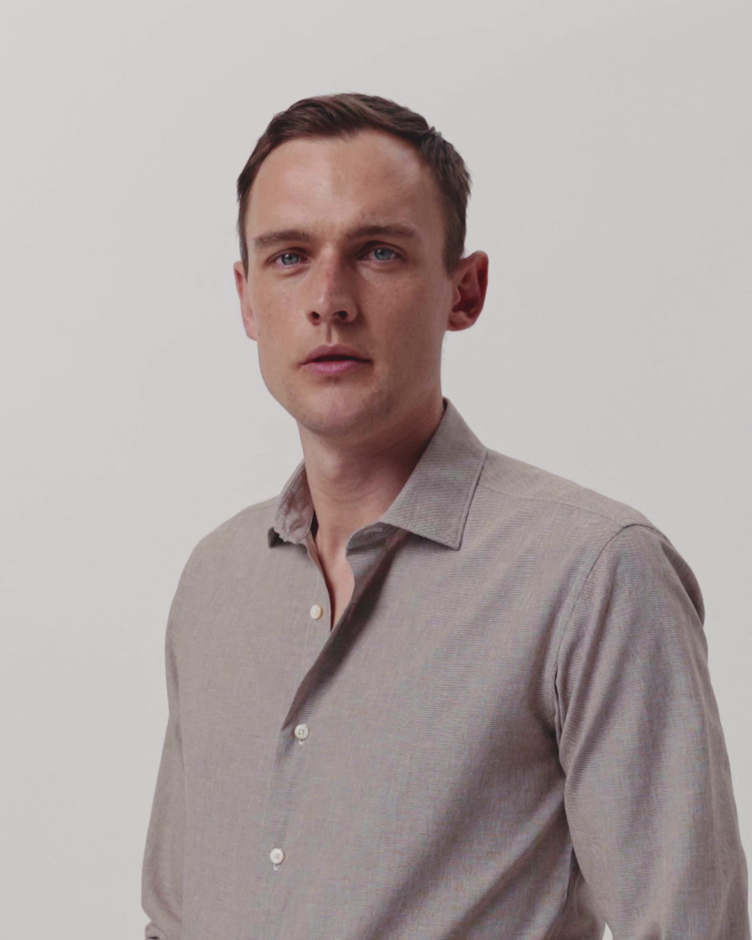 Slim Fit Houndstooth Cotton Linen Shirt with Open Collar