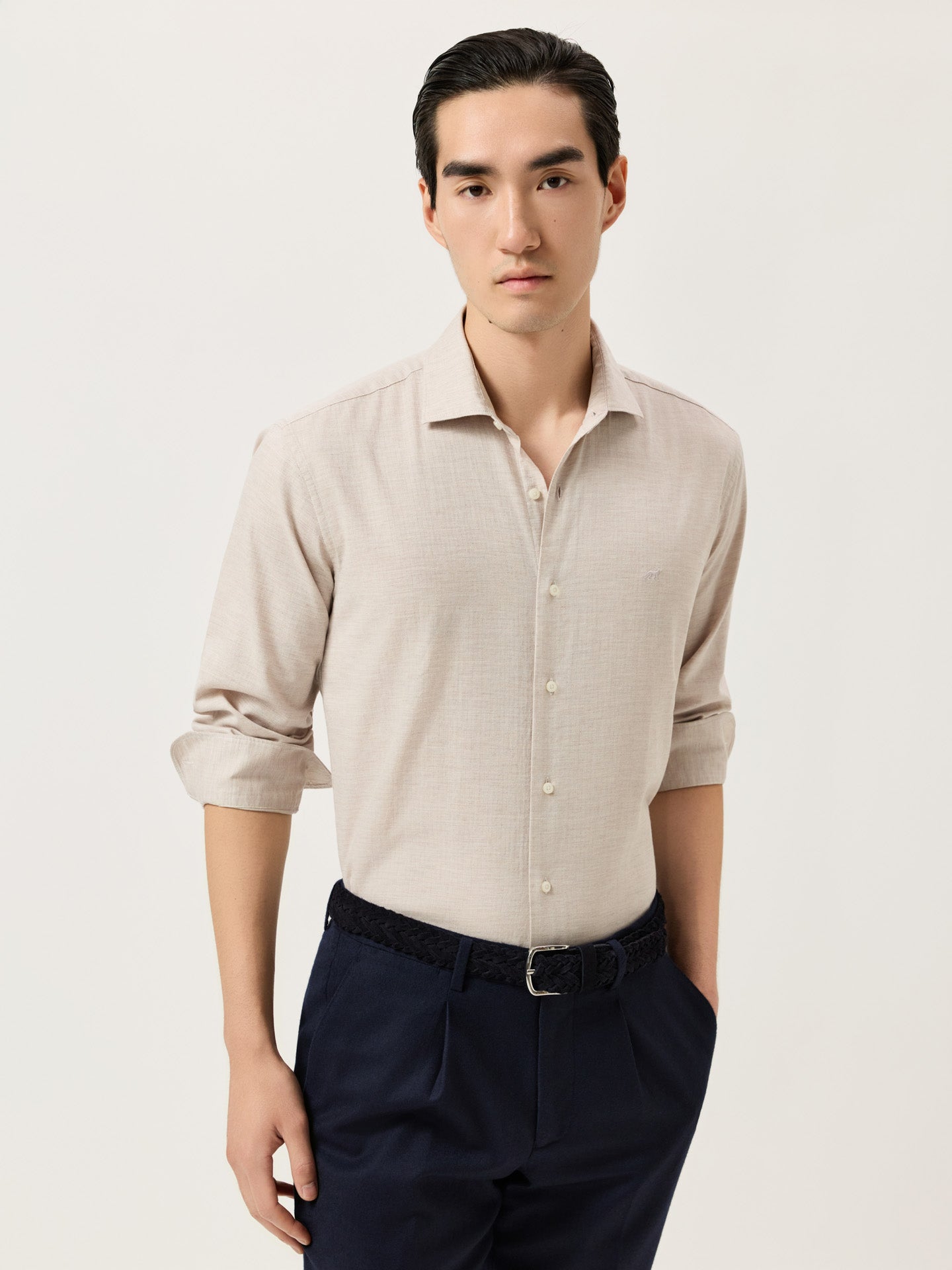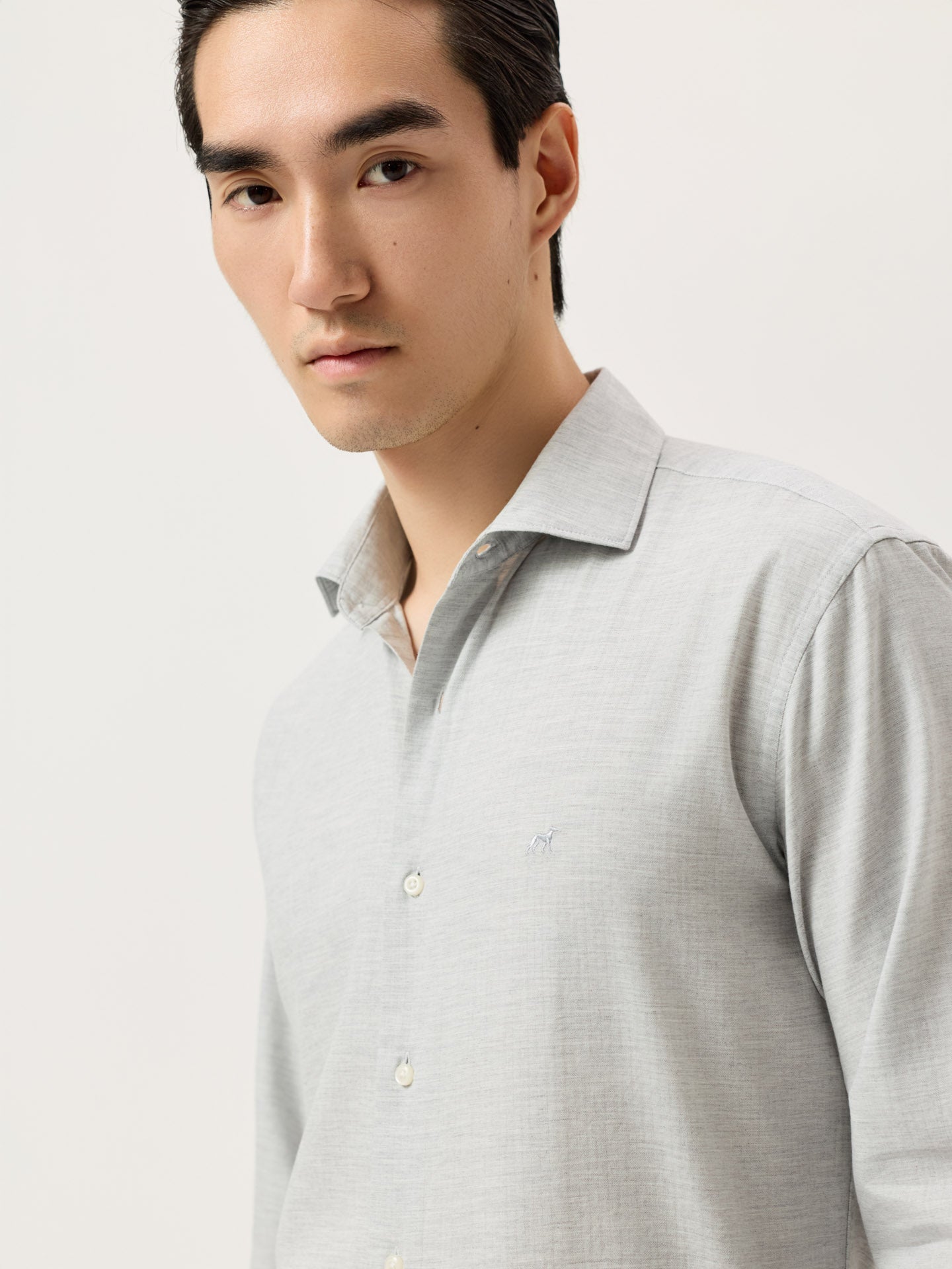 Slim Fit Mélange Herringbone Shirt With Open Collar