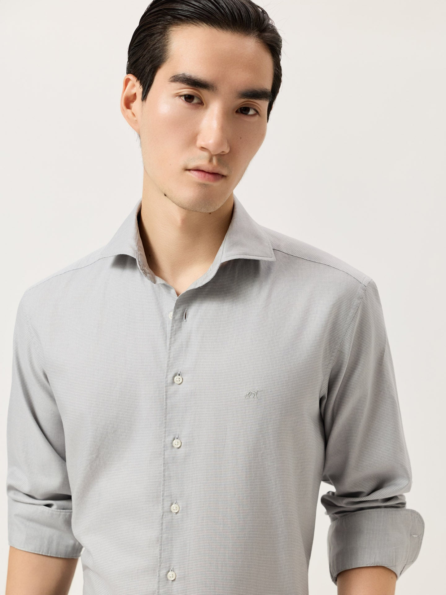Slim Fit Mélange Pied-de-Poule Cotton Shirt With Newport Collar