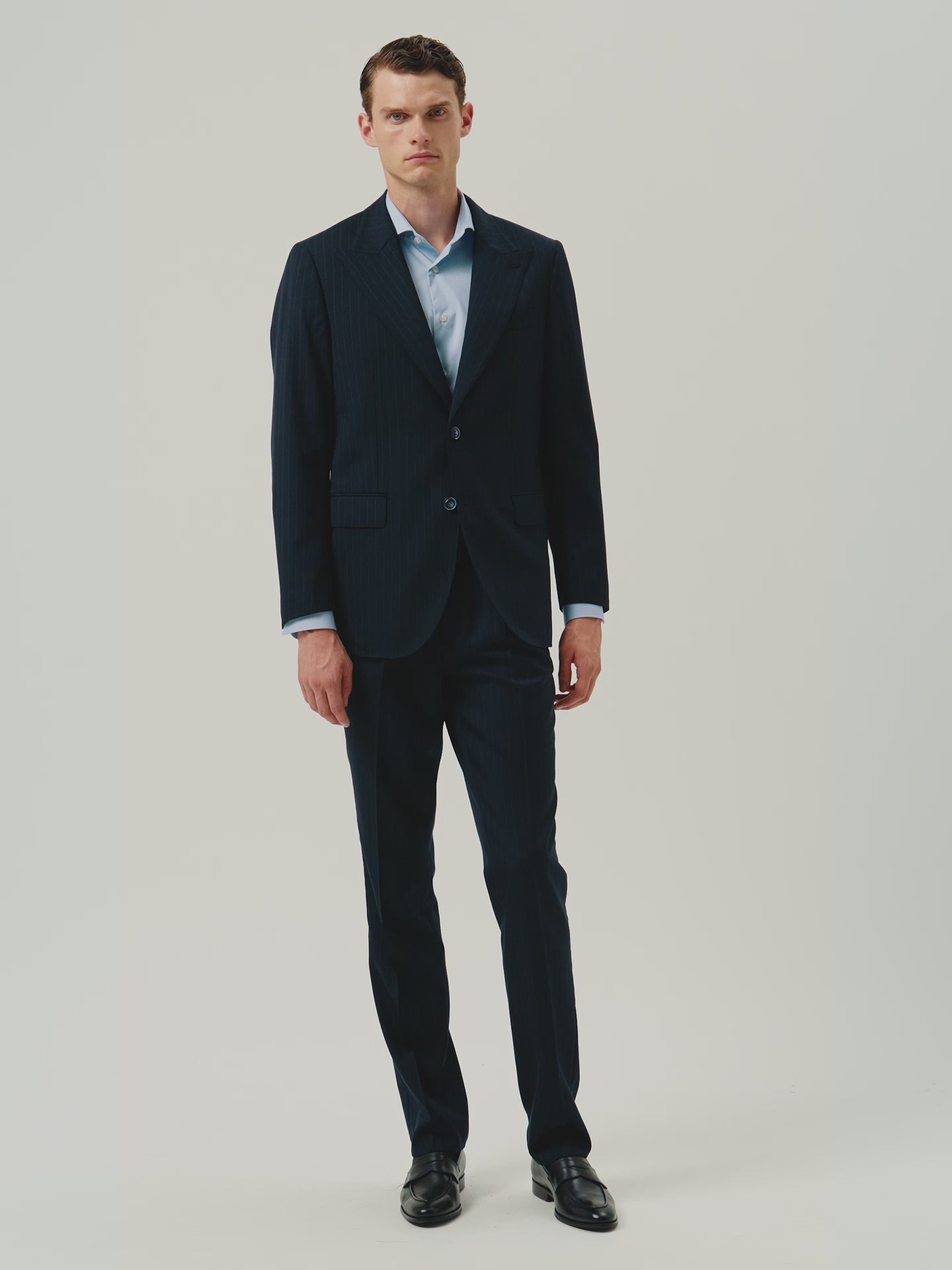 The men's suits from Sacoor Brothers are available with 'Drop 5' and 'Drop 6'. This designation refers to the difference between the blazer size and the trouser size. When ordering a size 46 with 'Drop 5', the trousers will be around size 41, while 'Drop 6' will result in trousers of size 40.