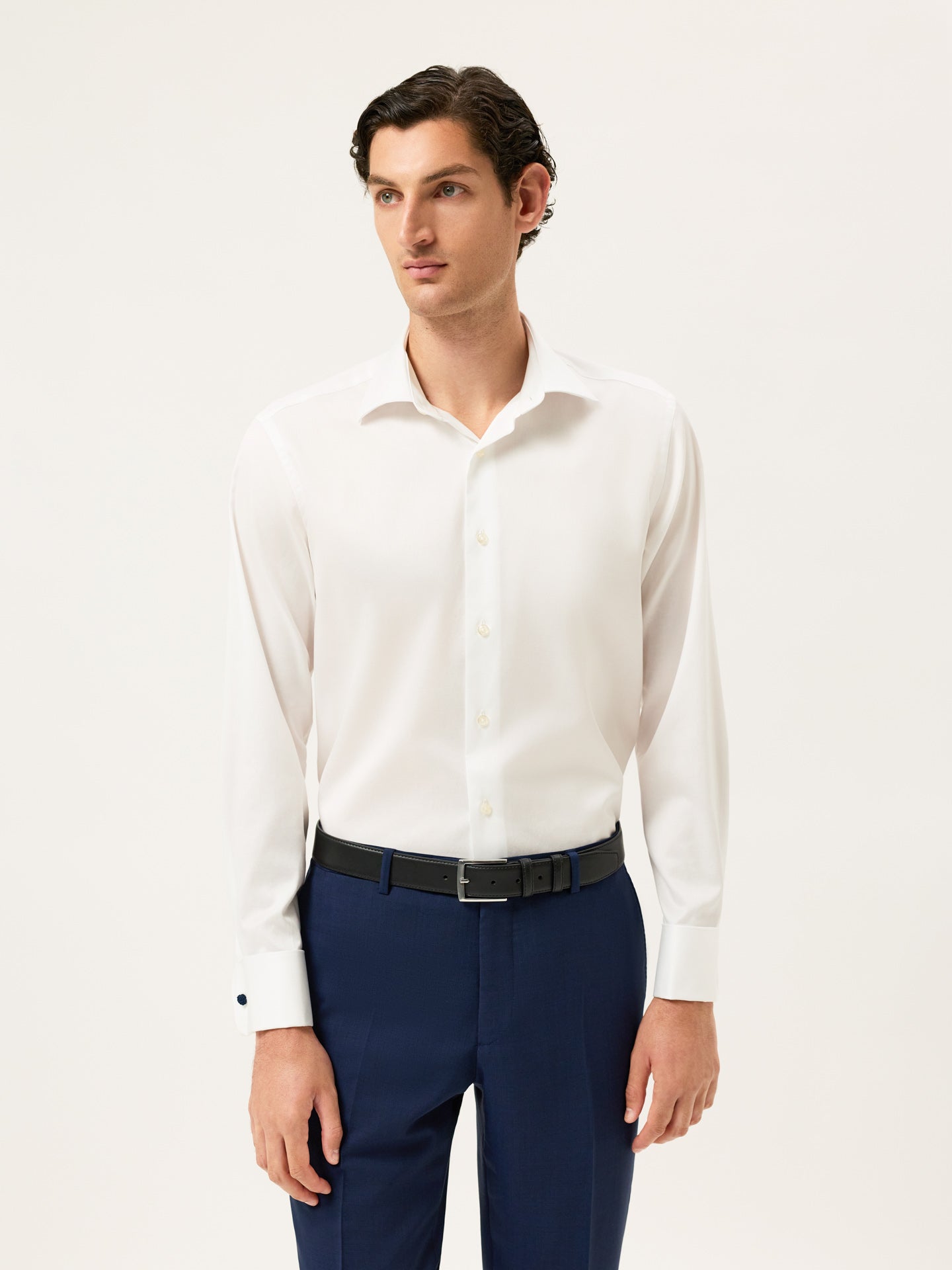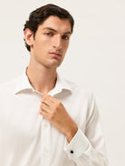 Regular Fit Twill Formal Shirt With Oxford Collar And Double Cuff