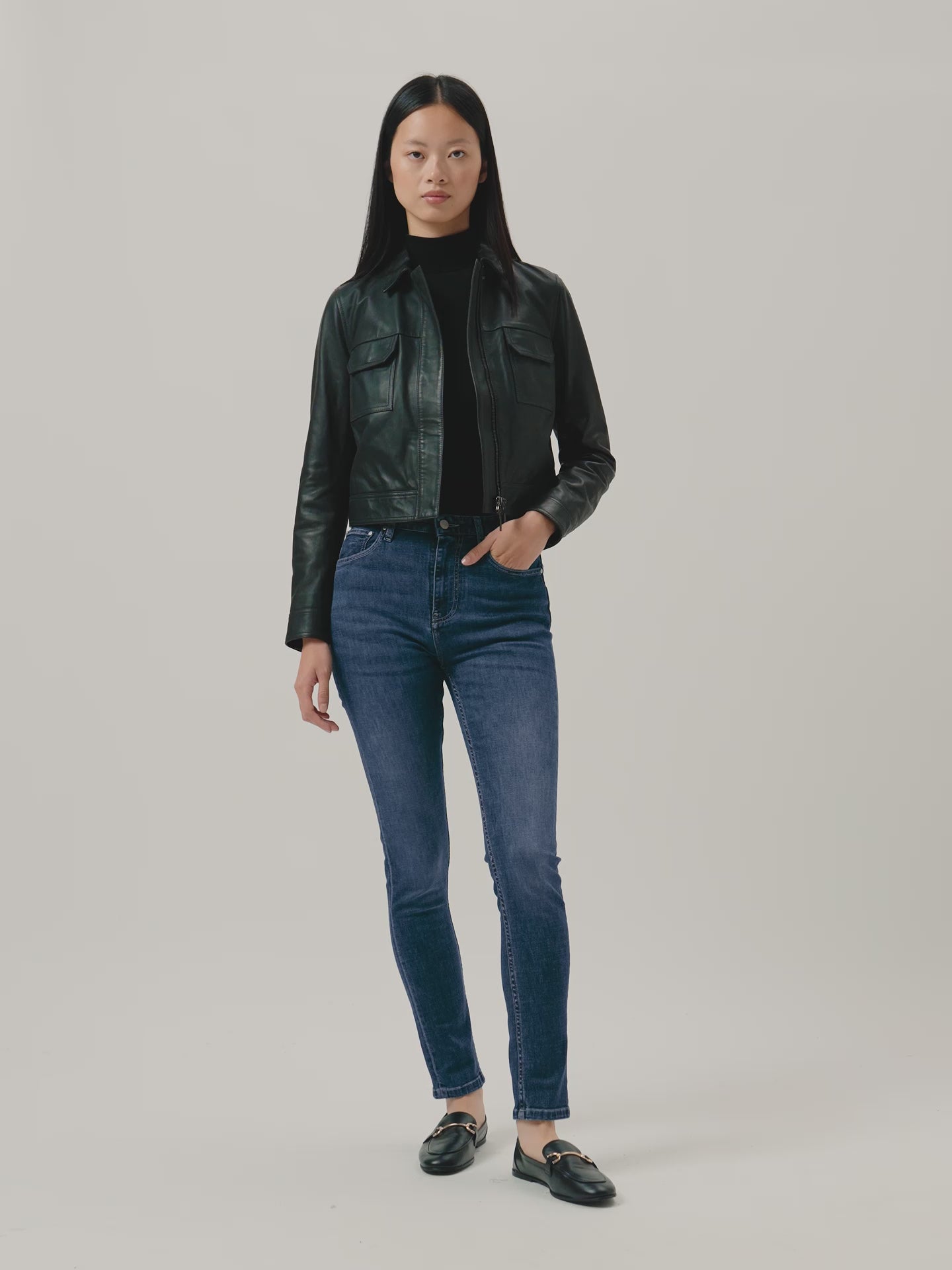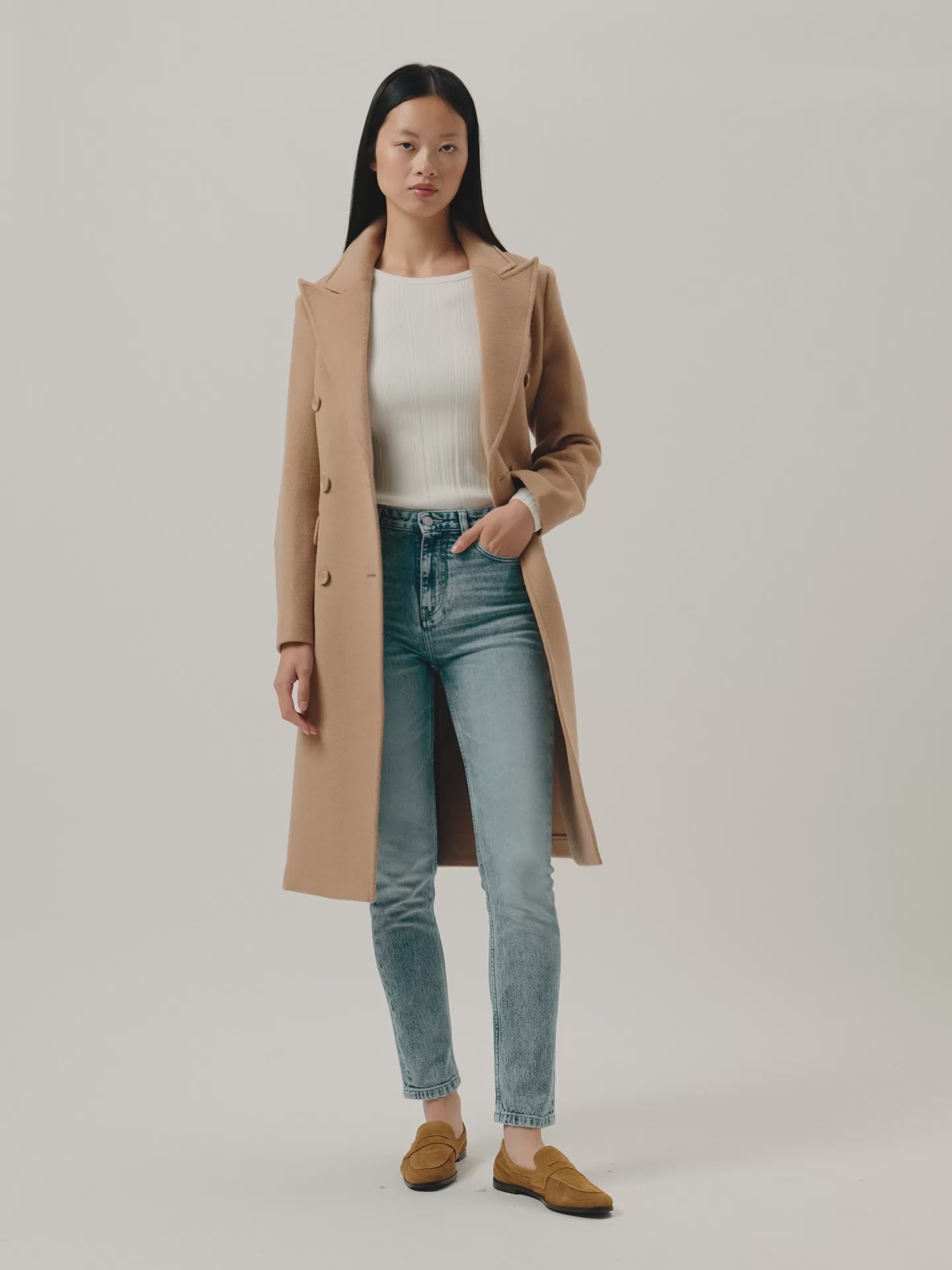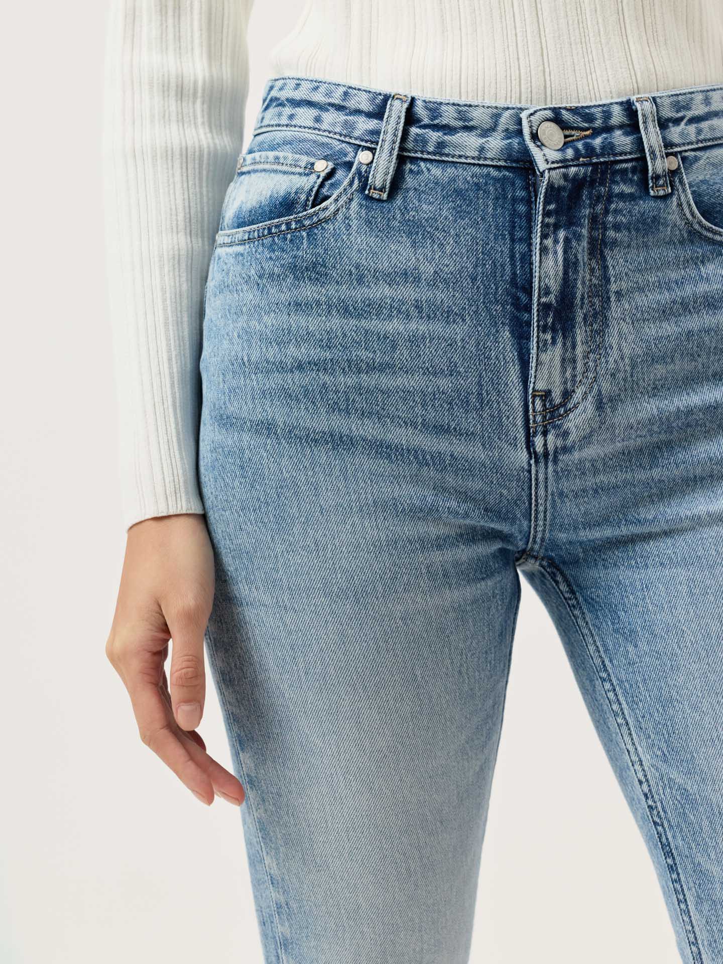 Denim Trousers in slim Fit. Featuring a slim leg and regular waist, these trousers are crafted from premium cotton denim with contrasting beige stitching. They are finished with a branded leather label at the back and metal zipper at the fly. All our jeans are proudly made in Portugal.