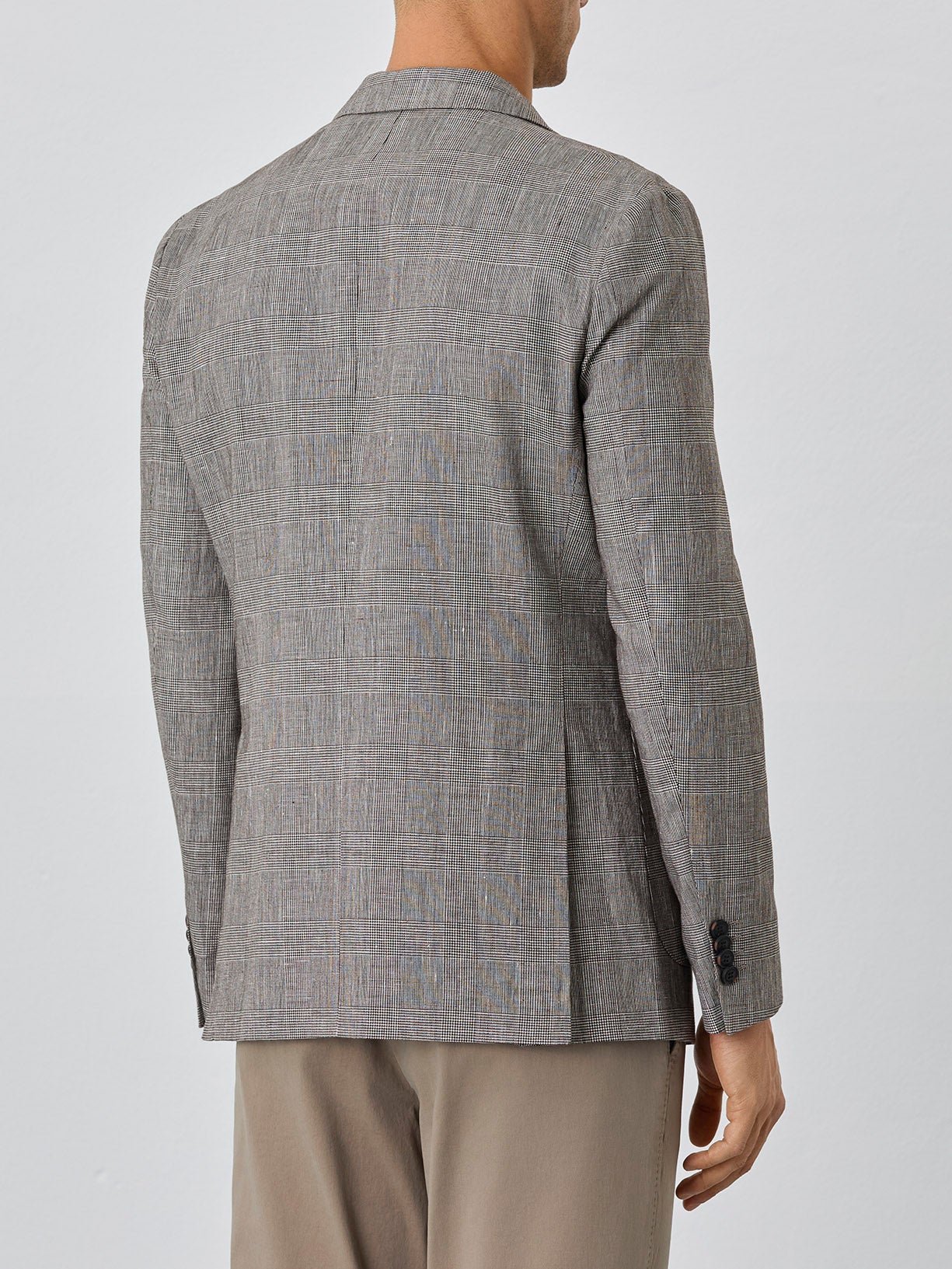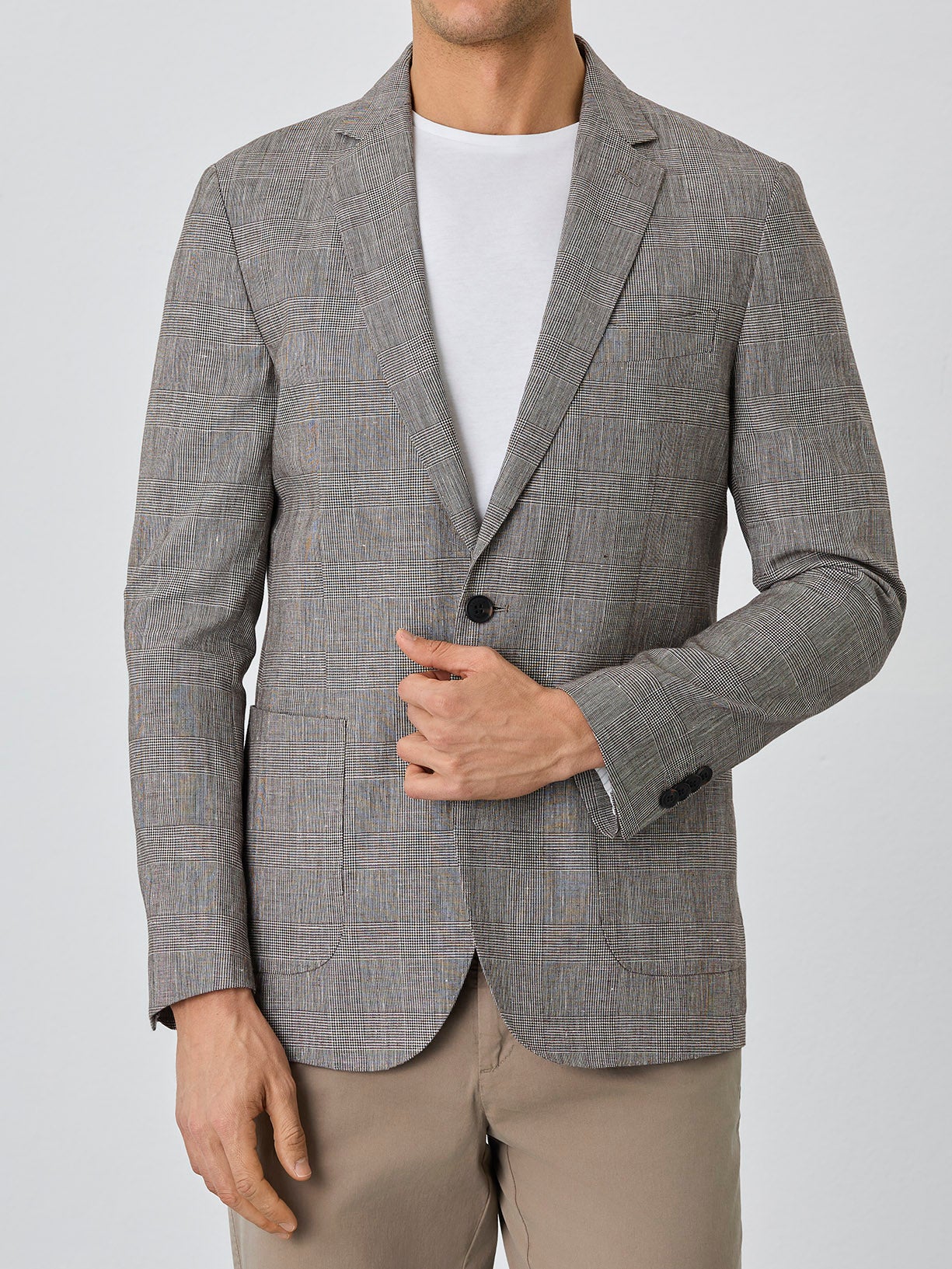 Half-Canvas Checks Blazer With Patch Pockets In Linen