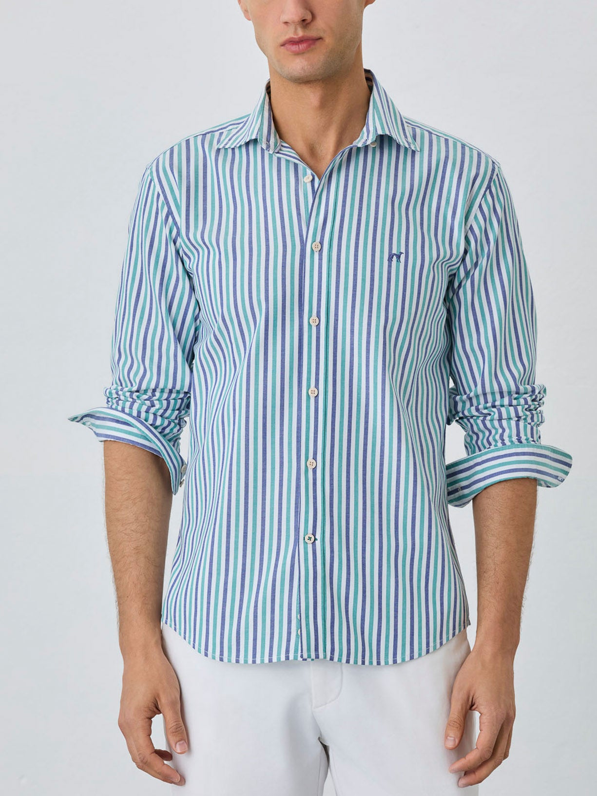 Slim Fit Shirt With Open Collar in BCI Cotton With Stripes