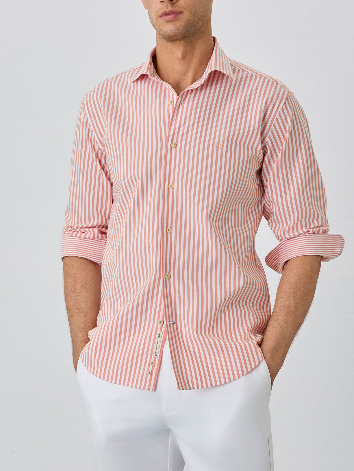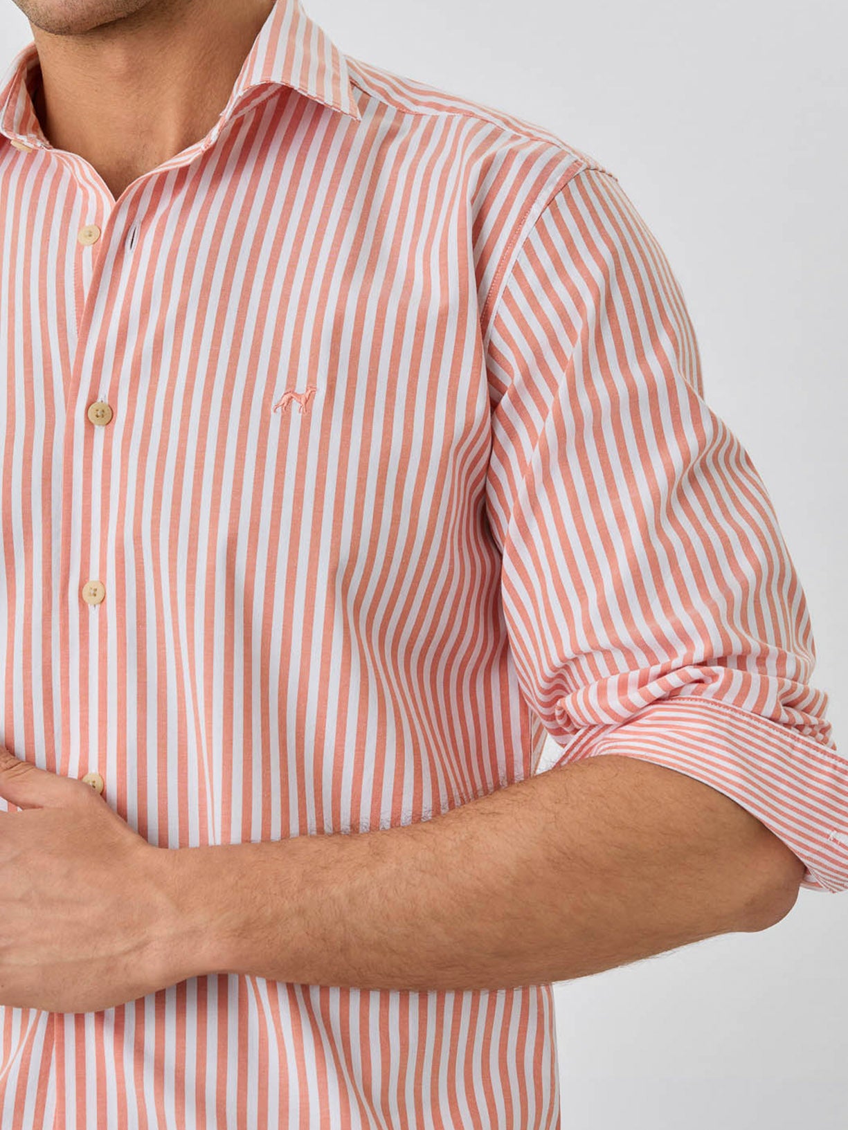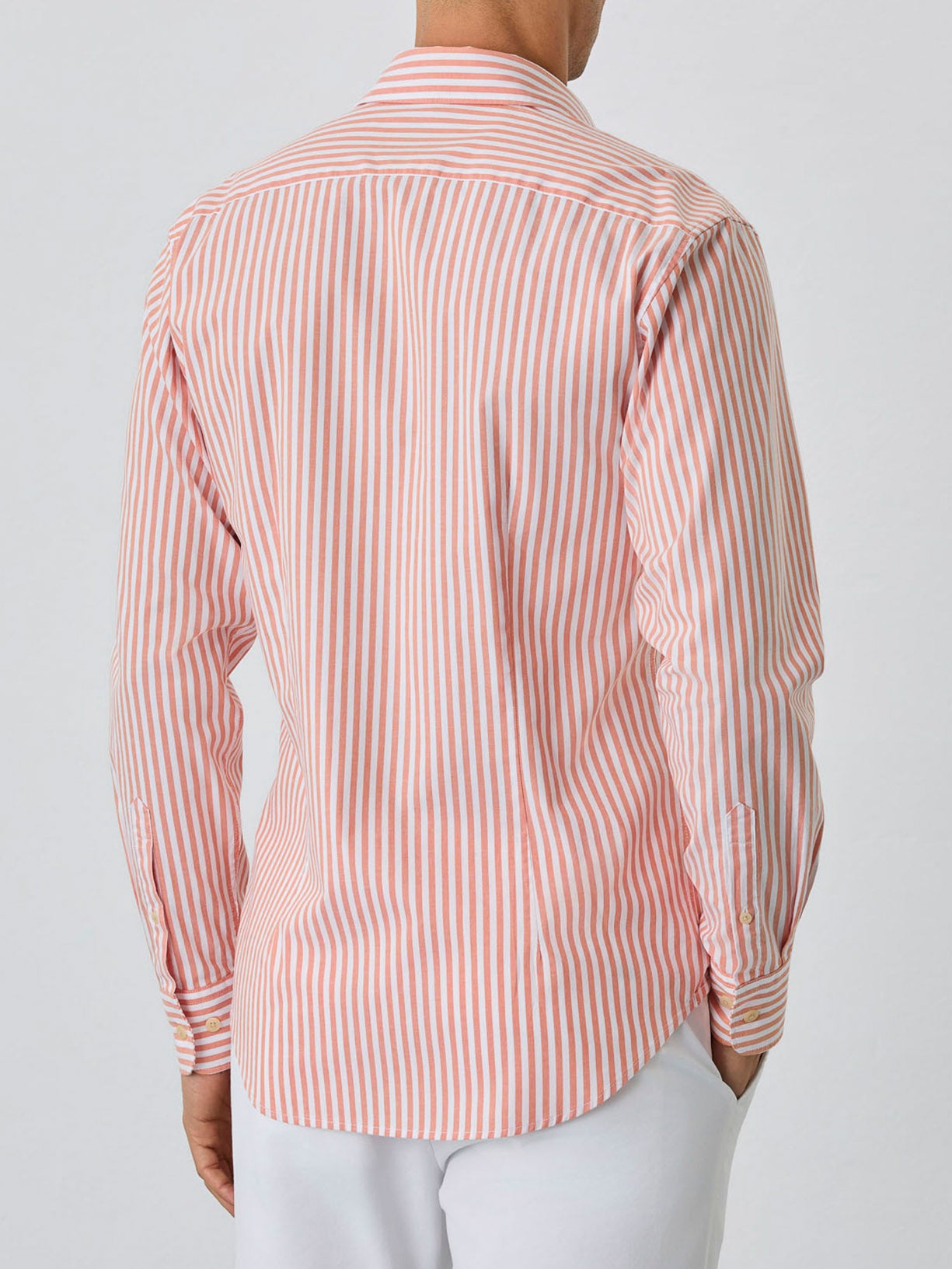 Slim Fit Shirt With Open Collar in BCI Cotton With Stripes