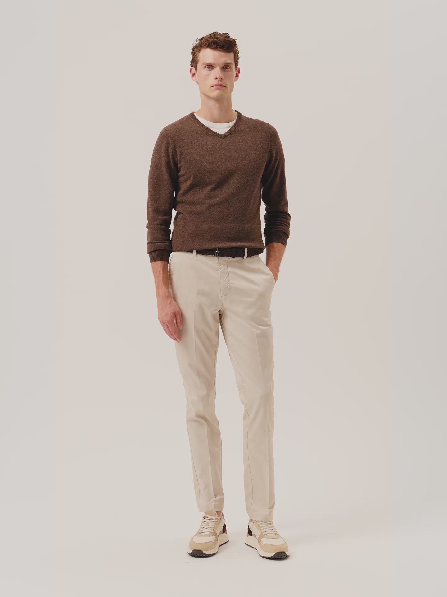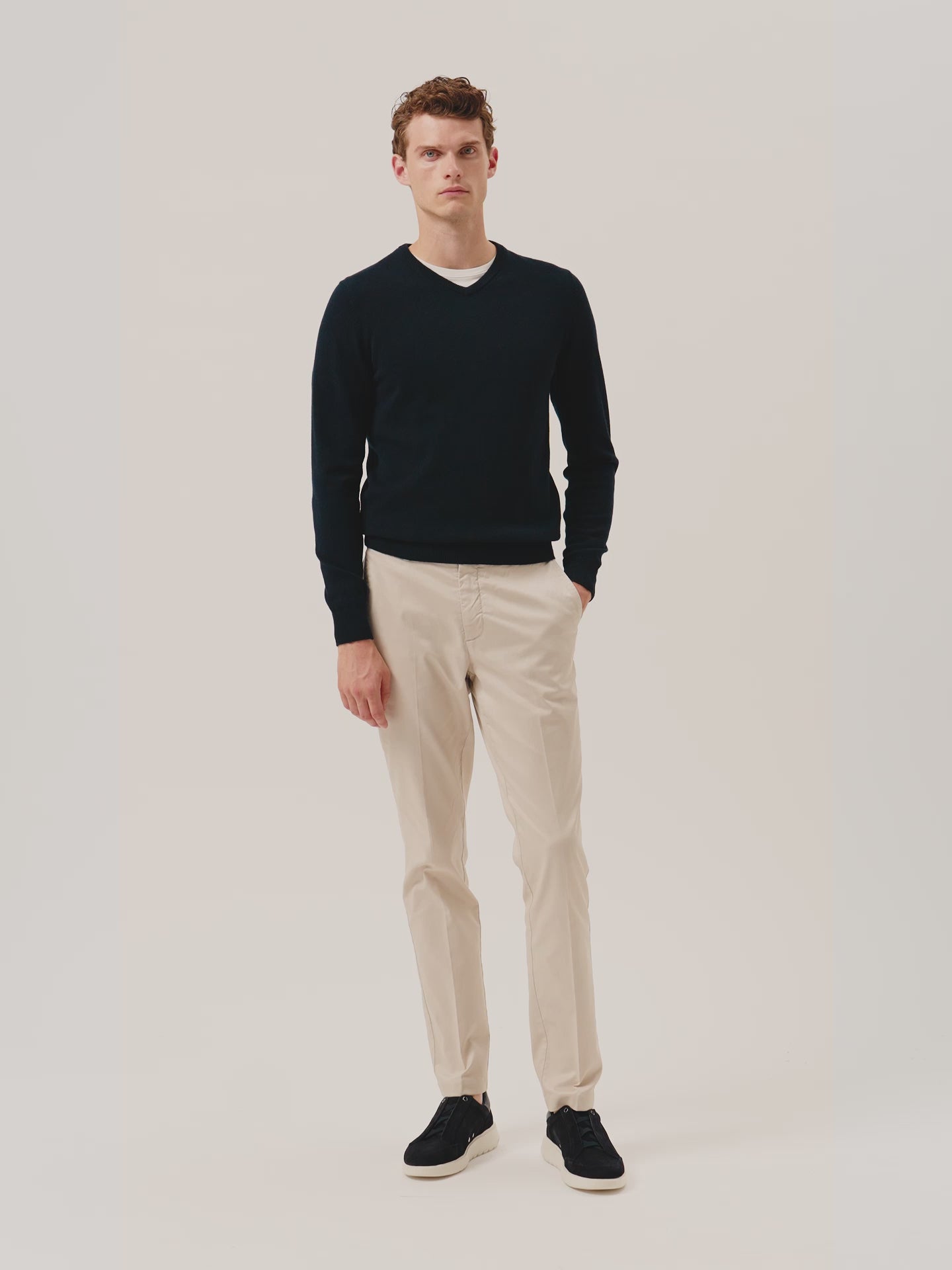 Long Sleeve V-Neck Sweater In Fine Lambswool