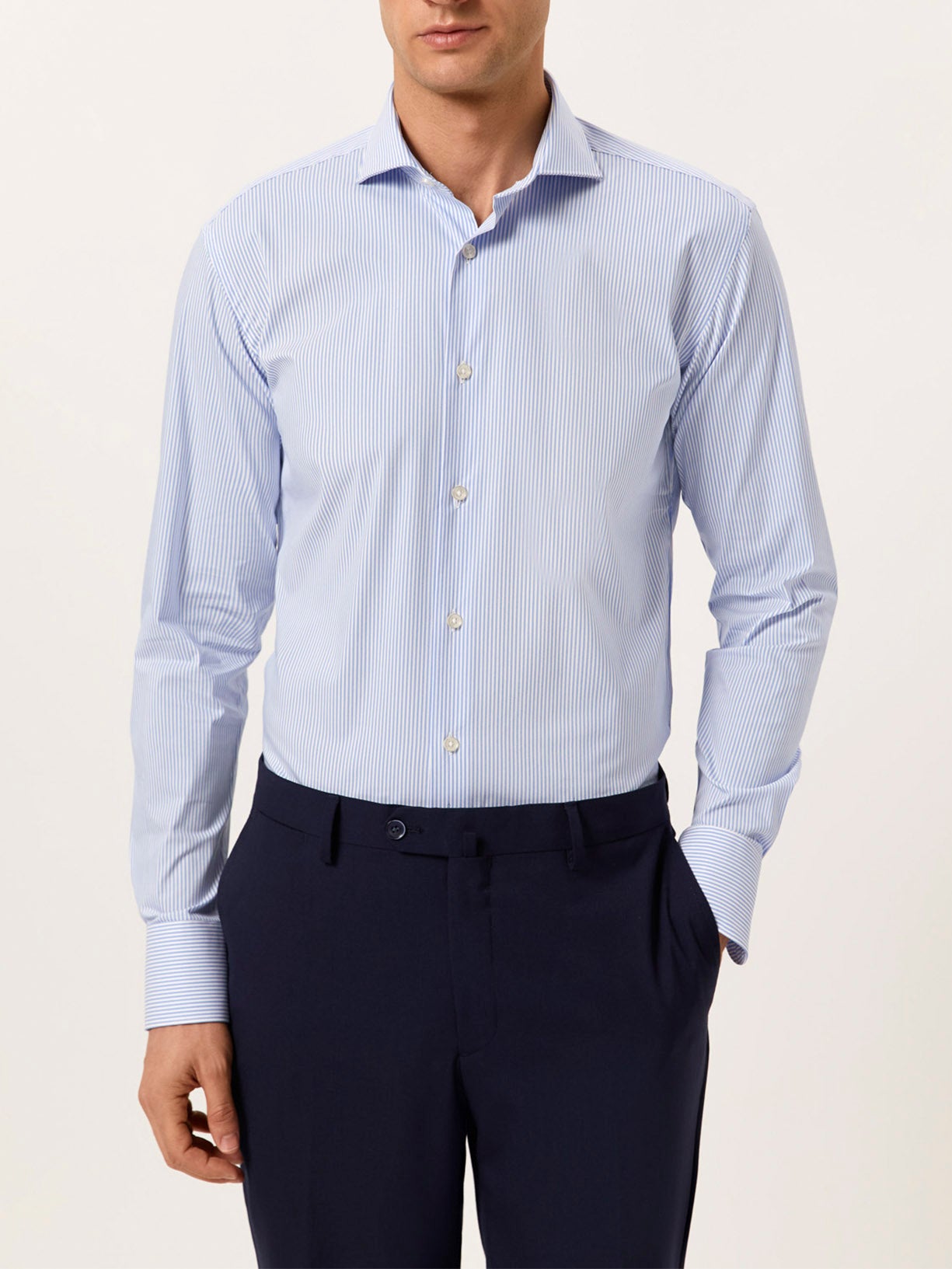 Slim Fit Travel Striped Poplin Shirt in Comfort Cotton