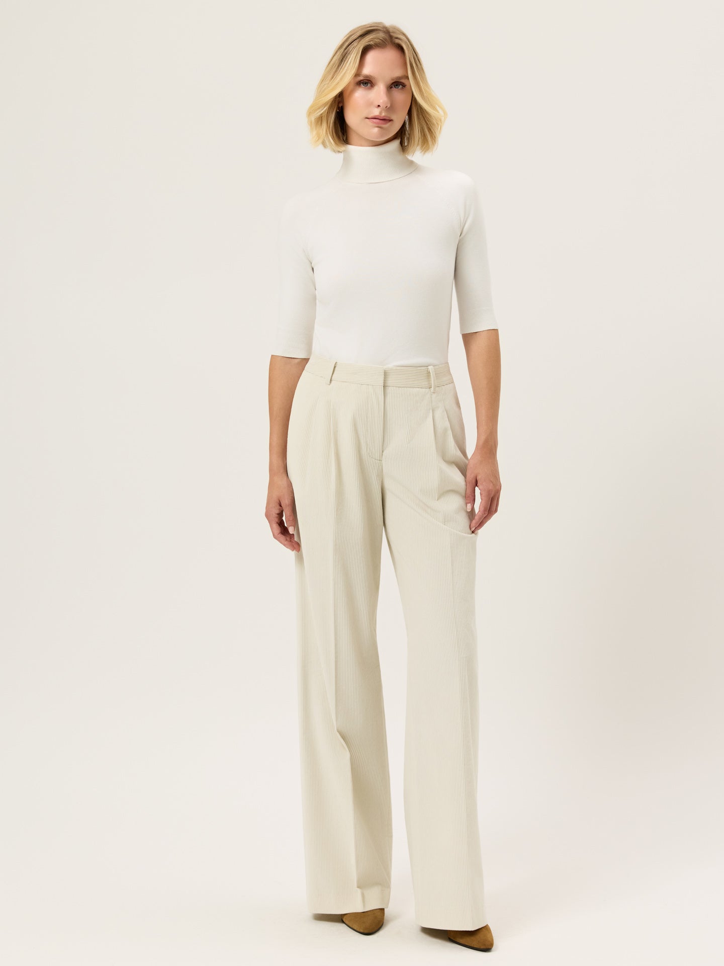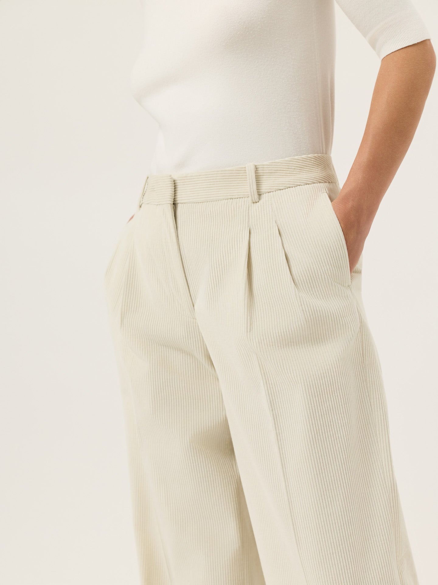 Loose Fit Trousers In 100%Cotton Corduroy With Pleats